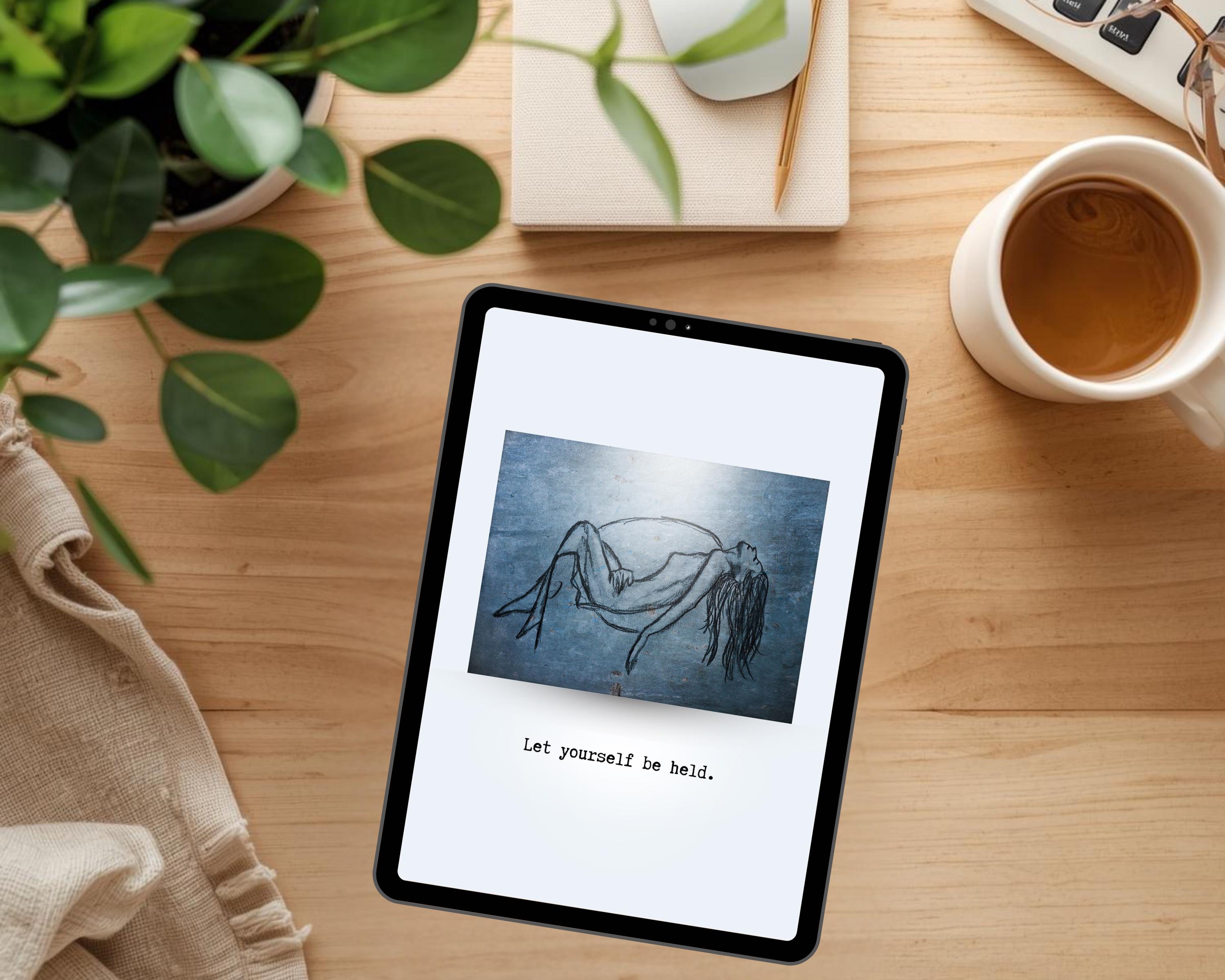More than decorative, this handmade mental art acts as a gentle mental health print for support during tense or emotionally overstimulated moments. When you need a break but don’t want to journal, or when you seek a visual reminder that rest is allowed, this wellness wall print can help. The image on this mental wellness page works through embodied calm, visually inviting you to pause and breathe.