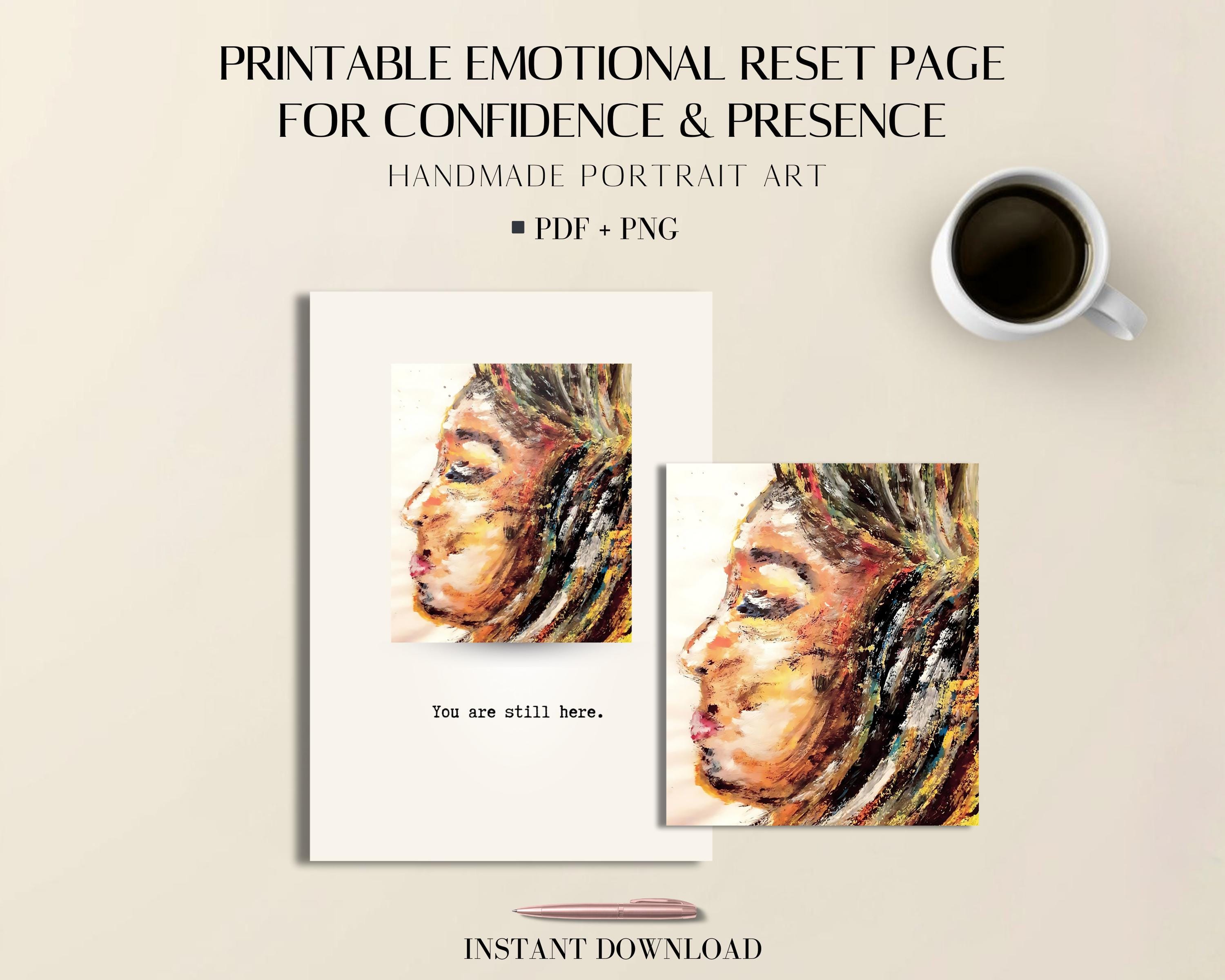 This printable emotional reset page is designed to help you recenter yourself whenever you feel disconnected from your confidence, voice, or self presence. Using gentle, vibrant feminine wellness imagery, this visual reset page supports you in regaining quiet confidence and clarity—without pushing productivity or motivation.