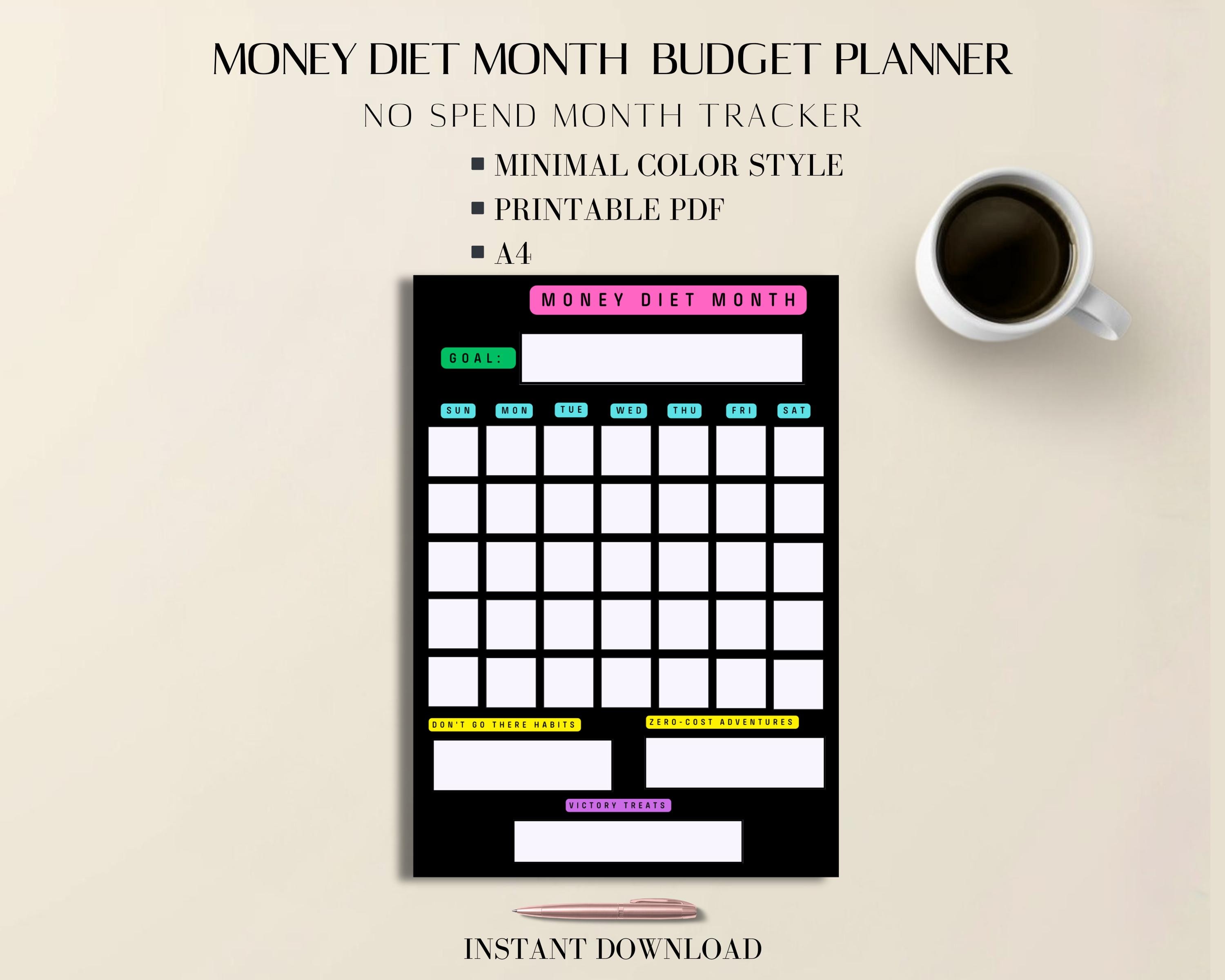Colorful No Spend Month Tracker | Printable Budget Planner | Fun Finance Sheet PDF (A4)