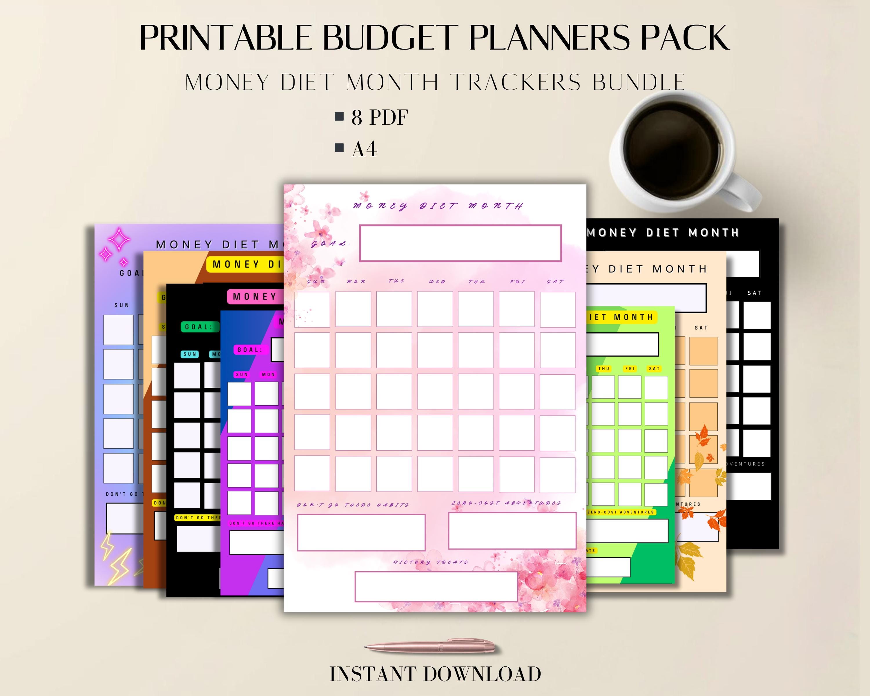 Printable Budget Planners Pack | Money Diet Month Trackers Bundle | 8 PDF | A4