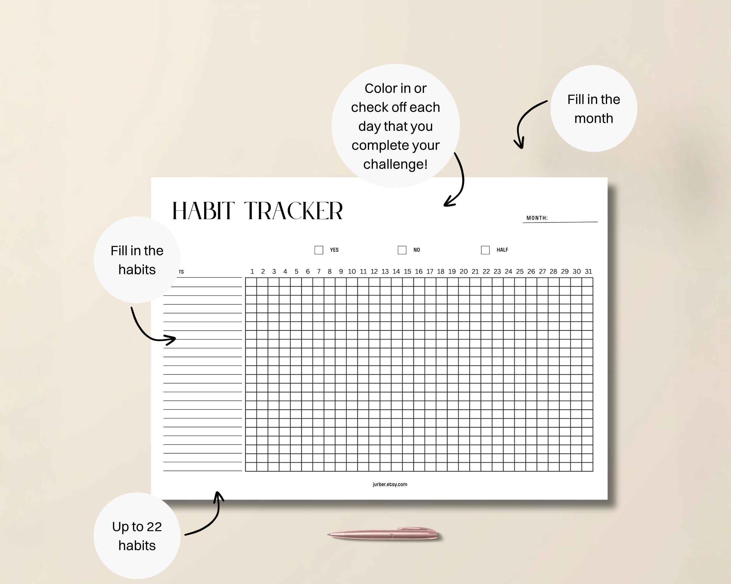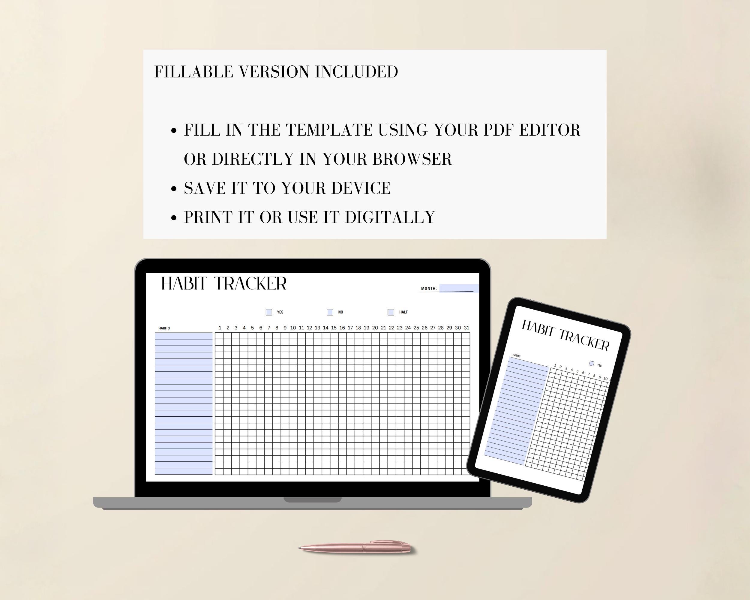 With a clean, modern layout, this fillable and printable PDF helps you track your habits, reflect on your progress, and stay motivated — perfect for personal growth, wellness, or mindful productivity.