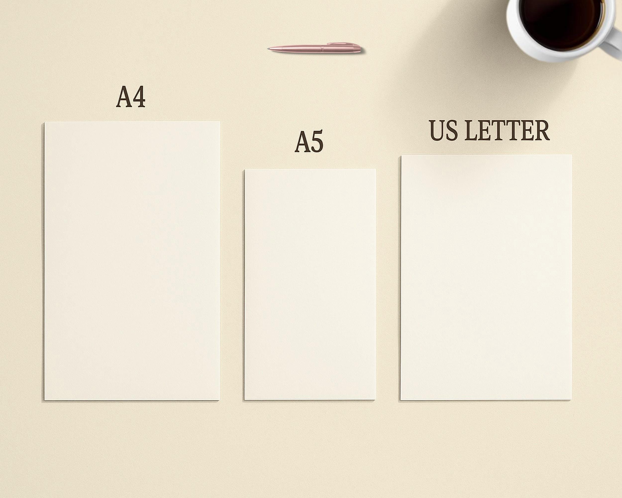 Most templates can be resized to A4, A5, US Letter, or other paper sizes using Canva or your printer settings.