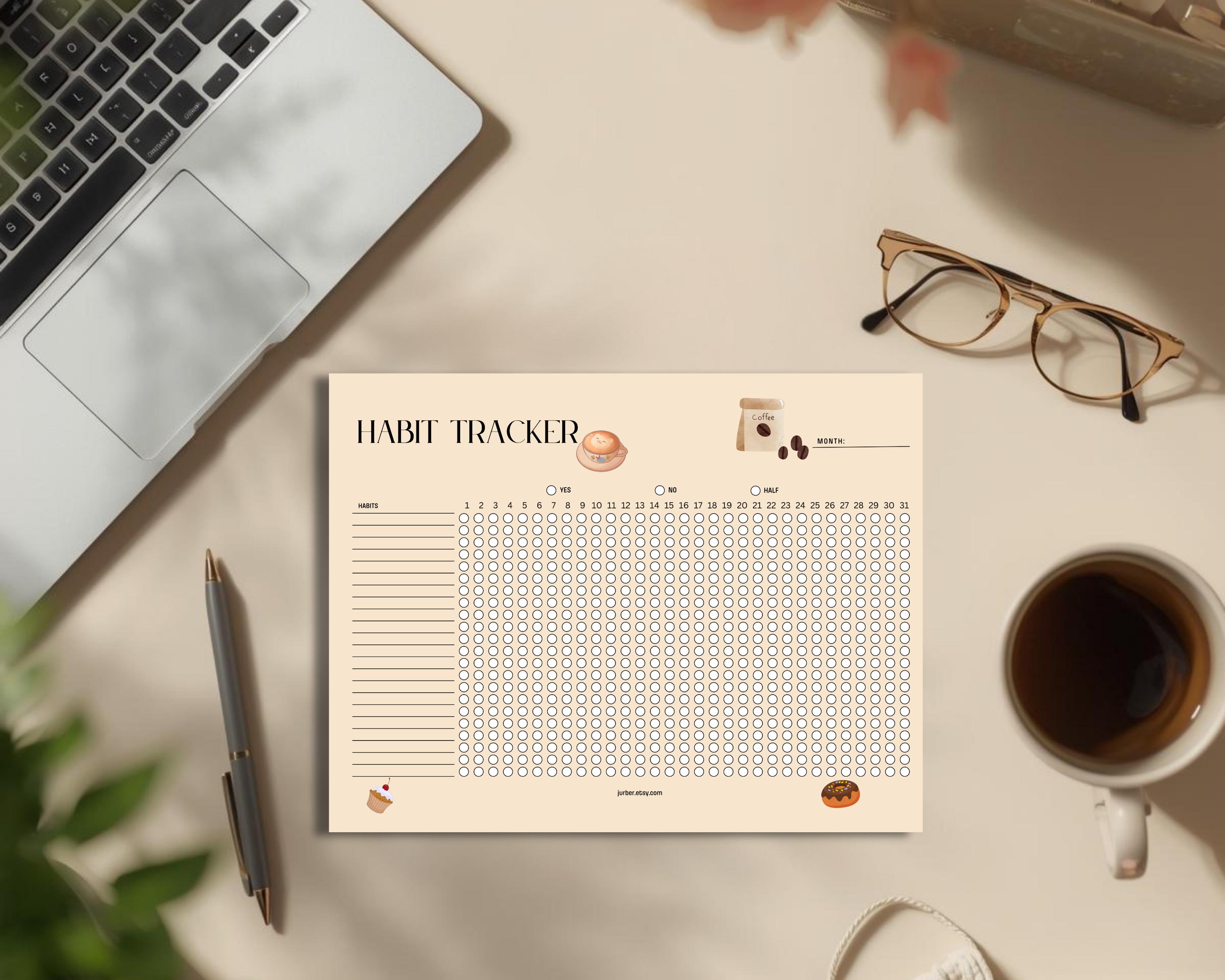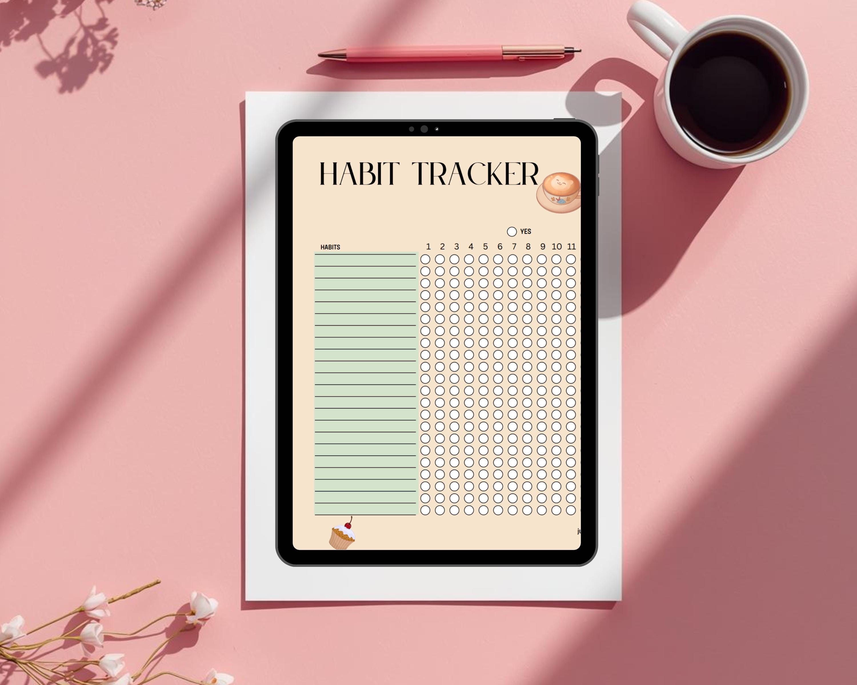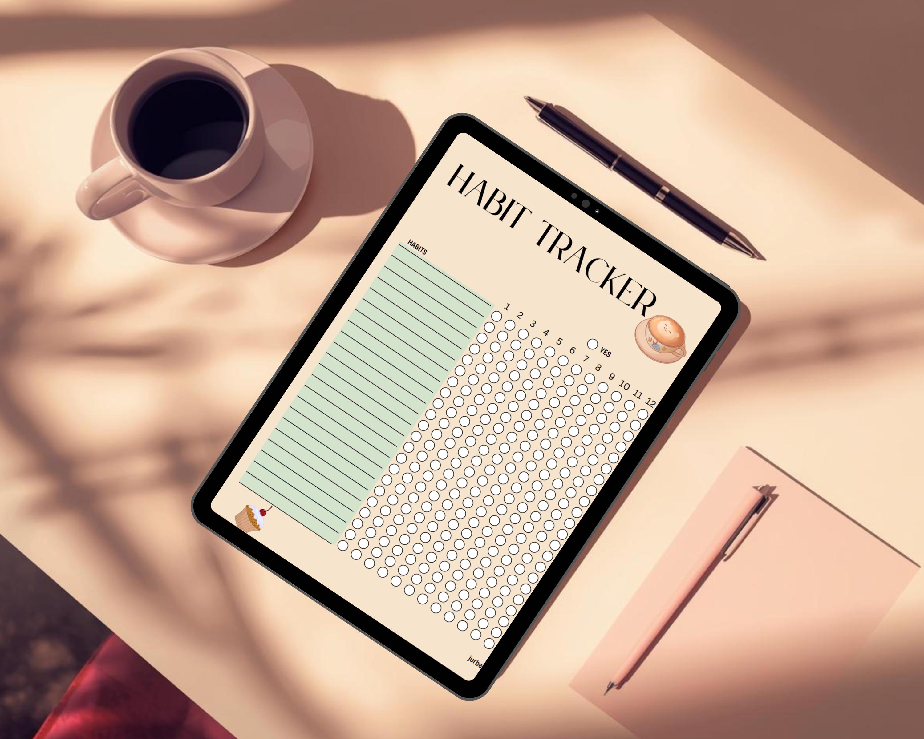 Begin every morning routine with purpose — and a cup of motivation. This coffee-inspired habit tracker helps you build routines that actually stick. Track goals, wellness, and progress in a warm aesthetic that keeps you grounded (and caffeinated).
