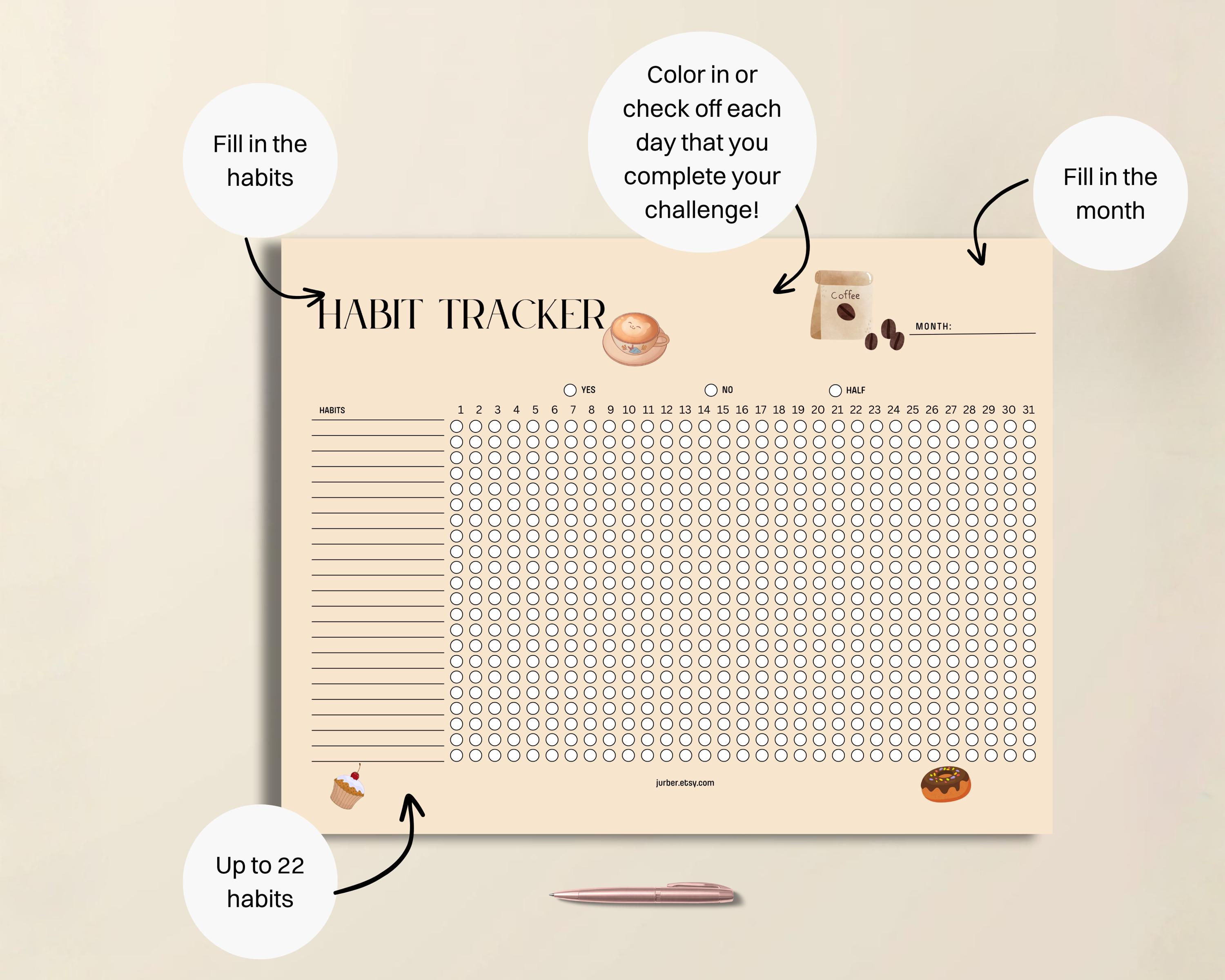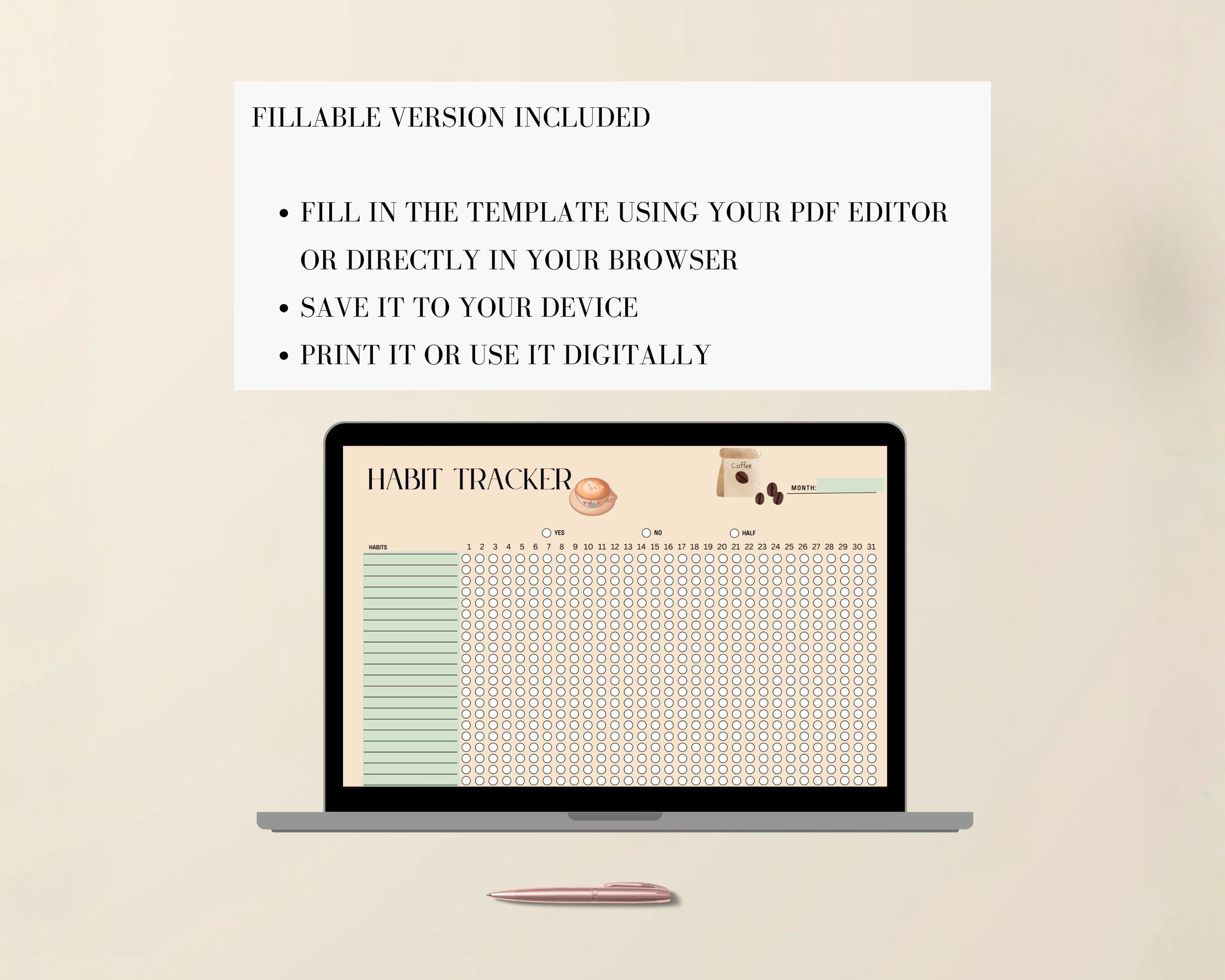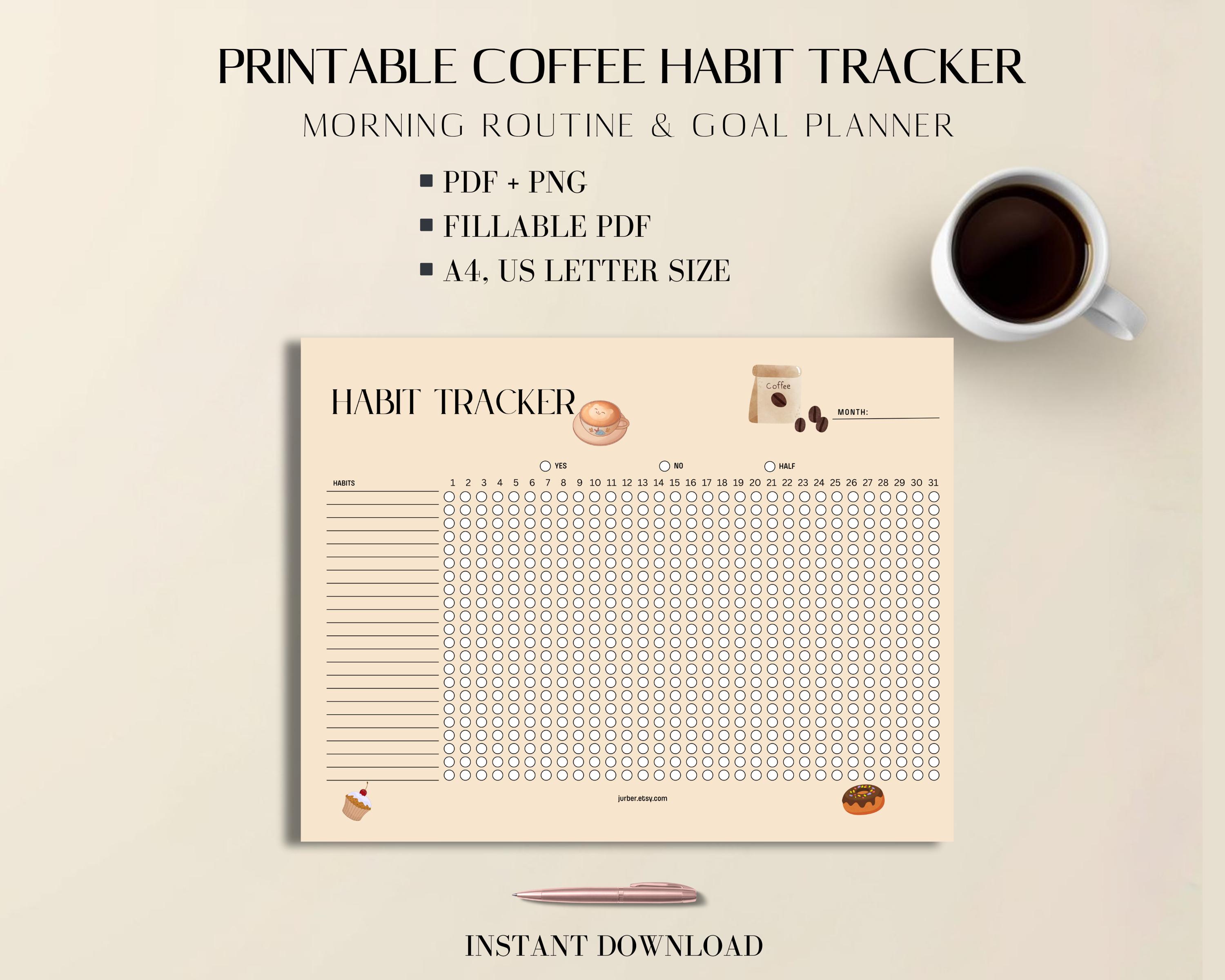 Printable Coffee Habit Tracker | Morning Routine & Goal Planner | SelfCare Journal (A4 / Letter PDF + PNG)