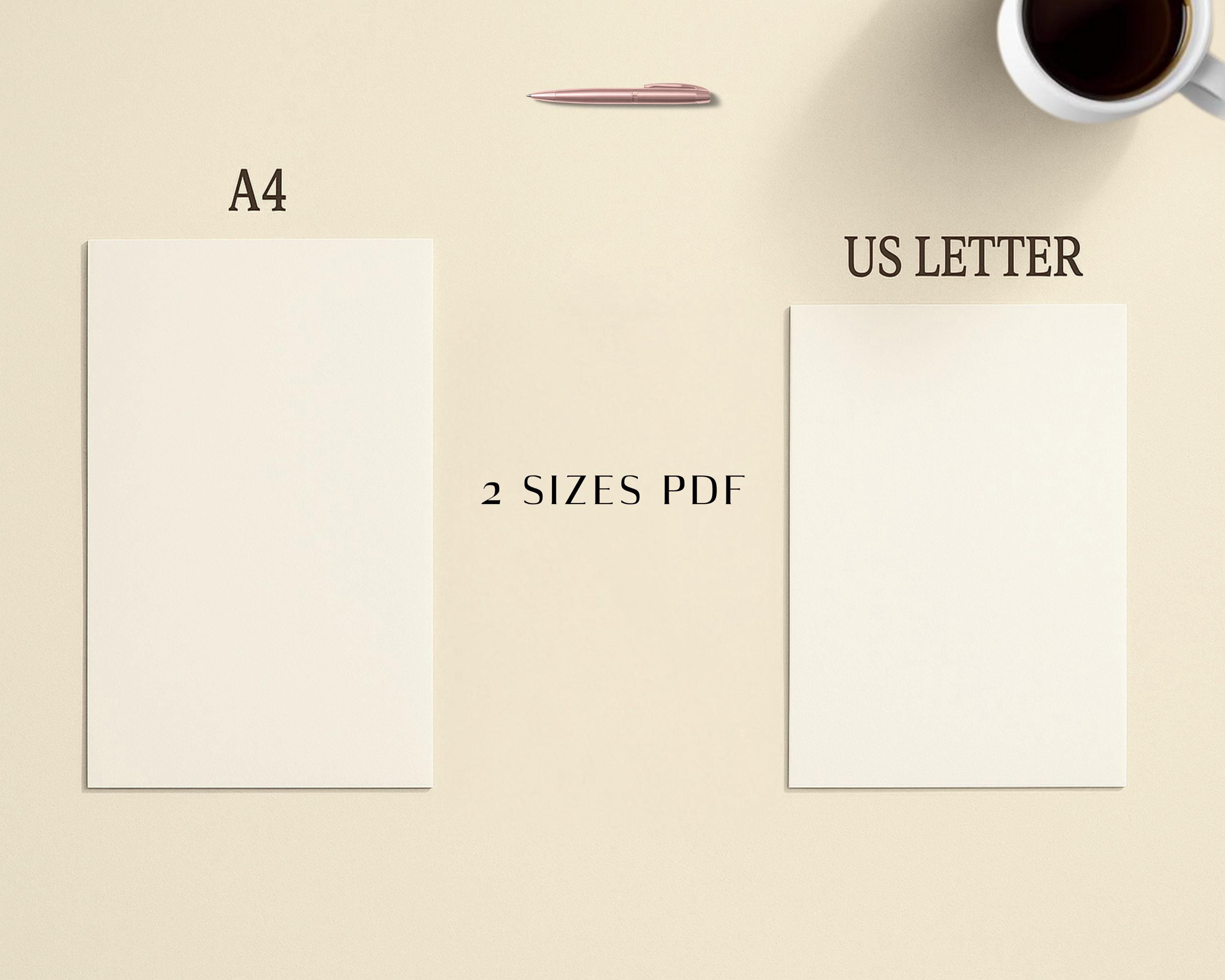 Most templates can be resized to A4, A5, US Letter, or other paper sizes using Canva or your printer settings.