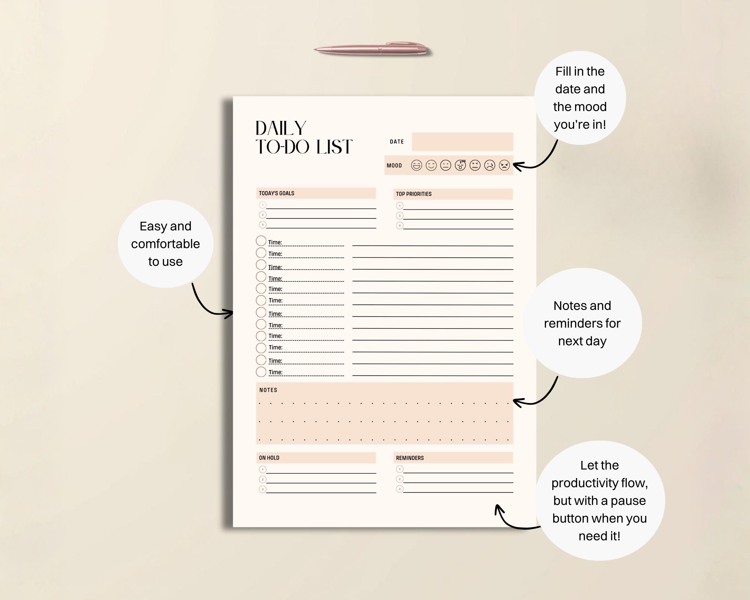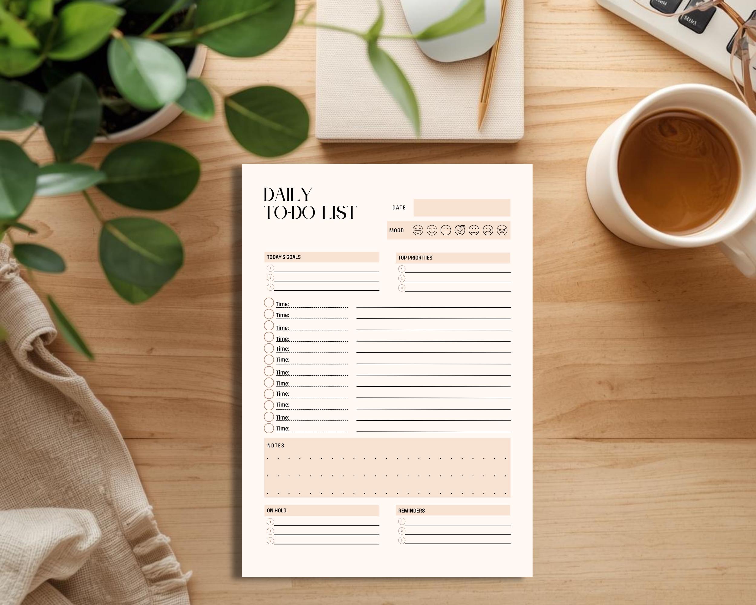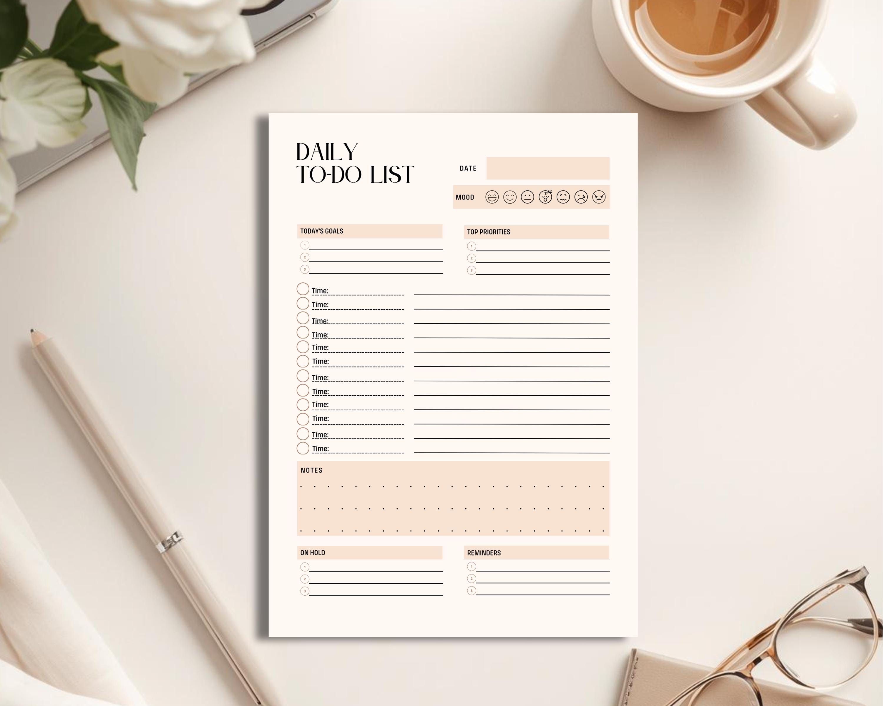 Stay organized and boost your productivity with this beautifully minimal Daily Personal Planner. This to do list is designed for focus, clarity, and calm efficiency, and it makes structuring your day quick and effortless. Whether you’re managing work projects, studying, or personal goals, this printable planner helps you prioritize what matters most and stay on track—all in just minutes.