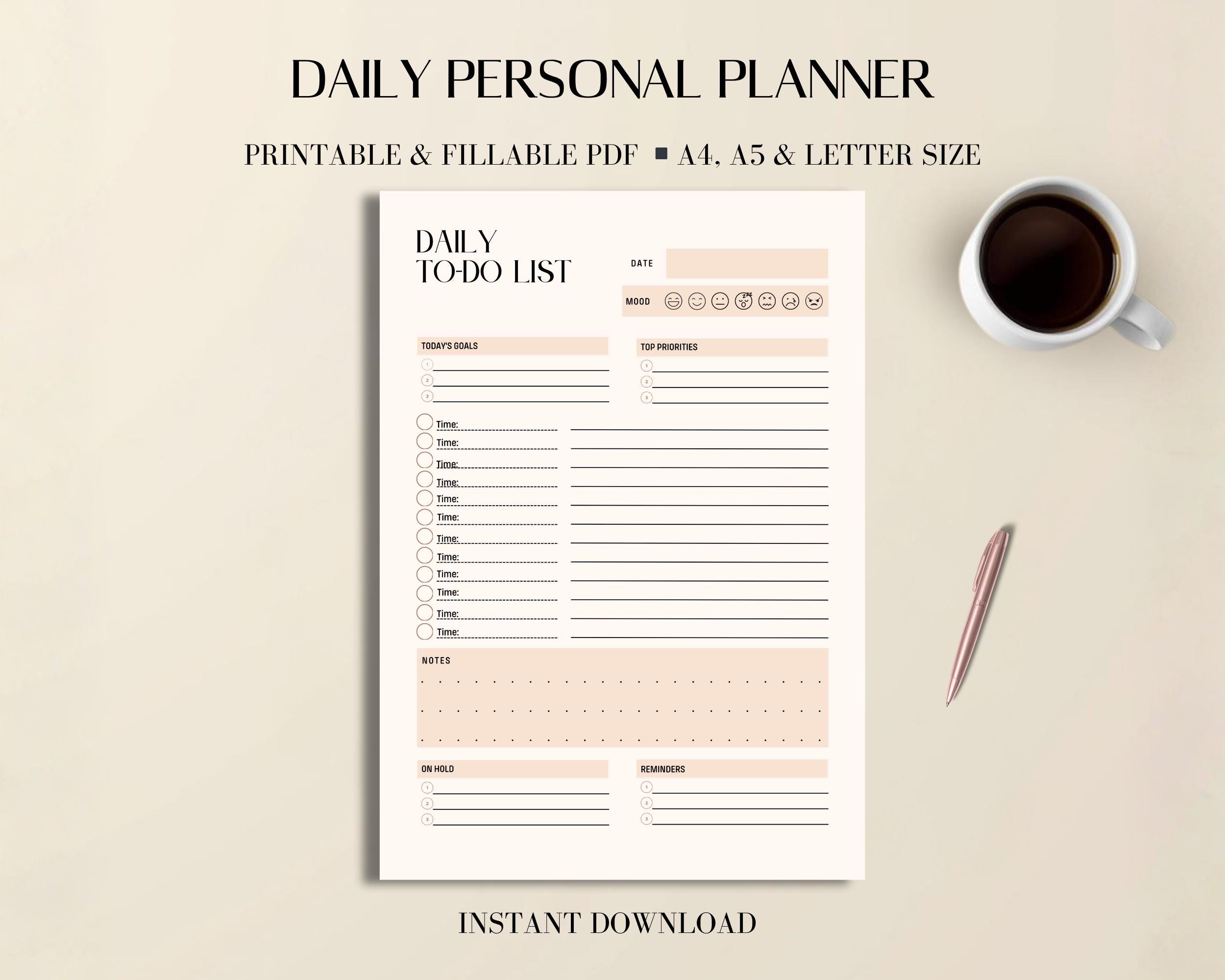 Daily Personal Planner | Mood Tracker | To Do List Printable PDF | A4, US Letter