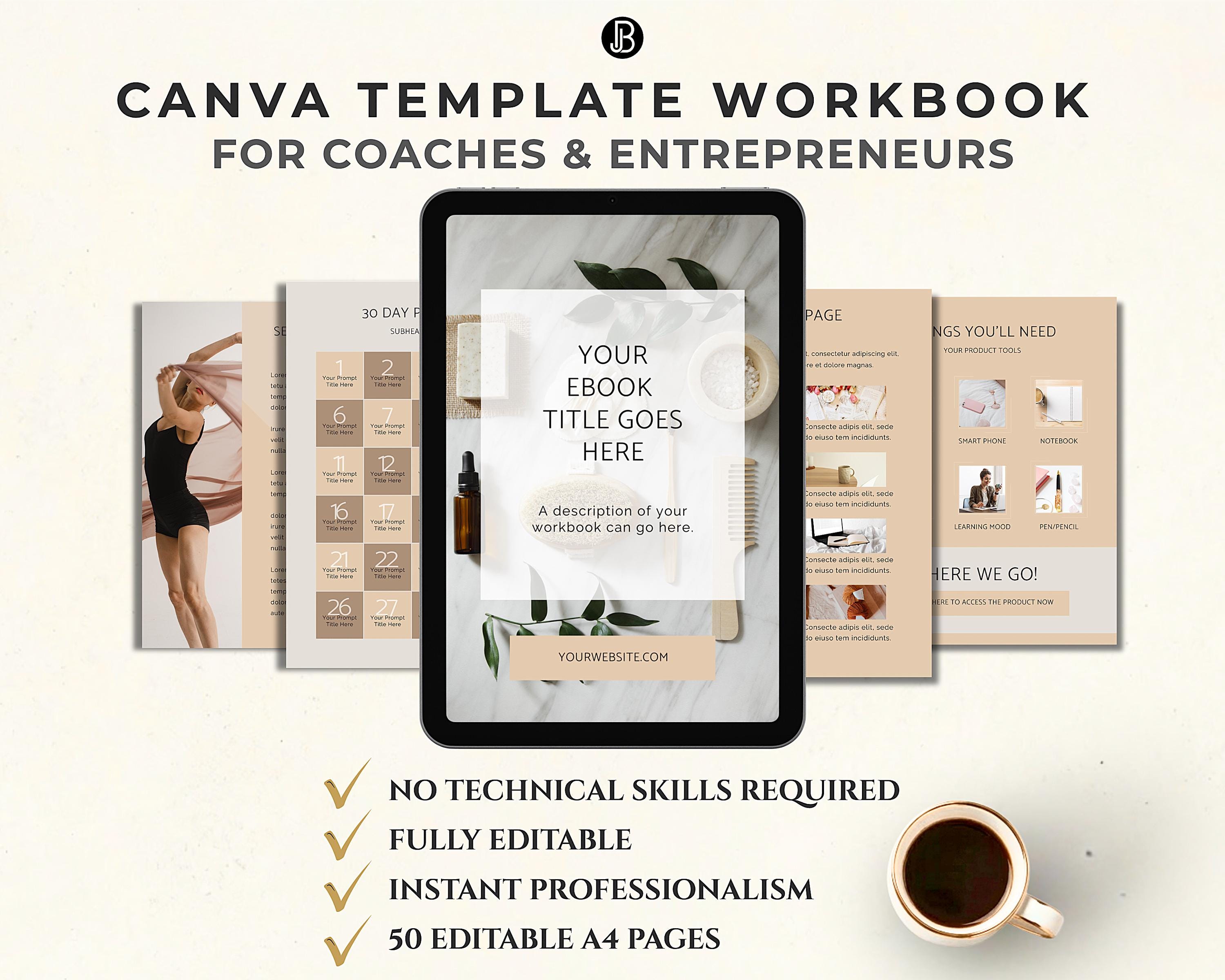 Canva Template Workbook for Coaches & Entrepreneurs, Editable Business Planner Pages, Minimal Coaching Workbook, Digital Download PDF Kit