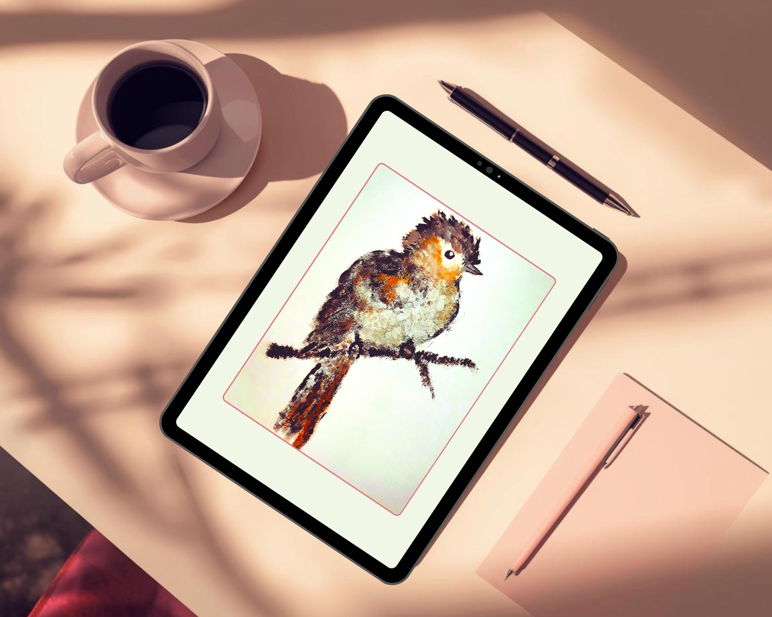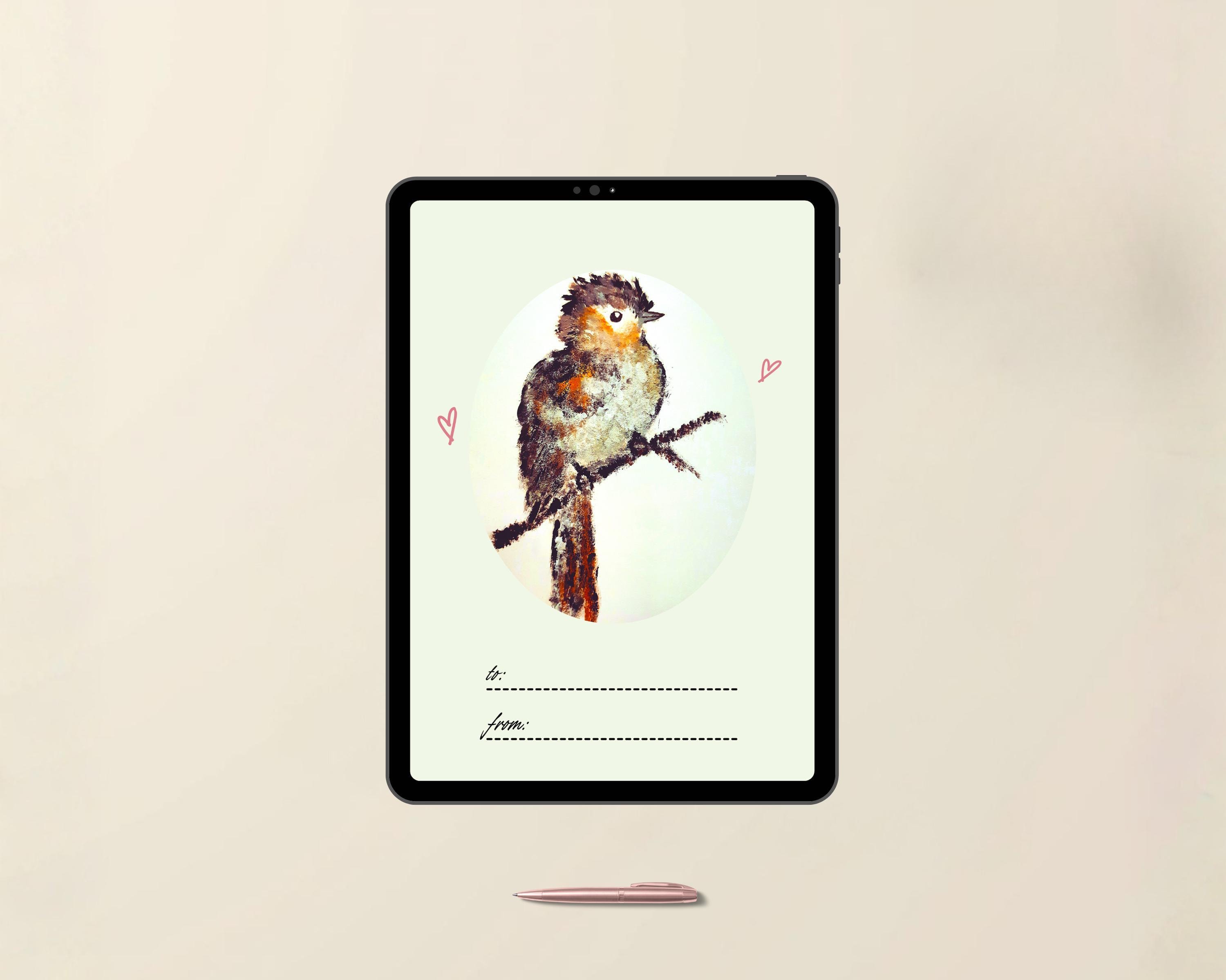 All artwork features a hand-painted watercolor bird. No AI or stock elements are used.