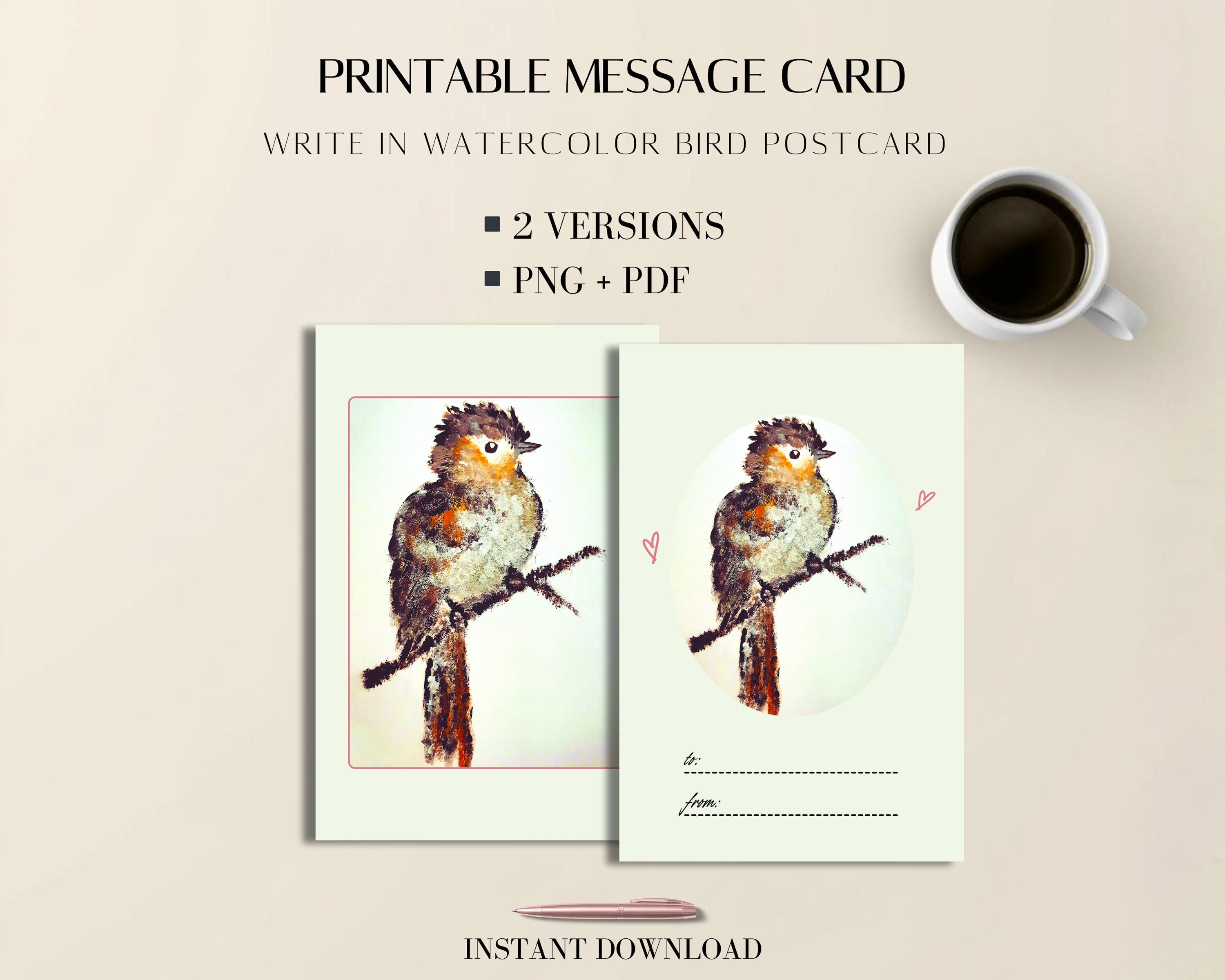 This printable message card is a gentle, write in card designed to help you connect in a mindful way. With its hand painted card style and watercolor bird art, this digital postcard invites you to share a quiet message, whether you’re writing a thinking of you card, an encouragement card, or simply want to start a mindful conversation.