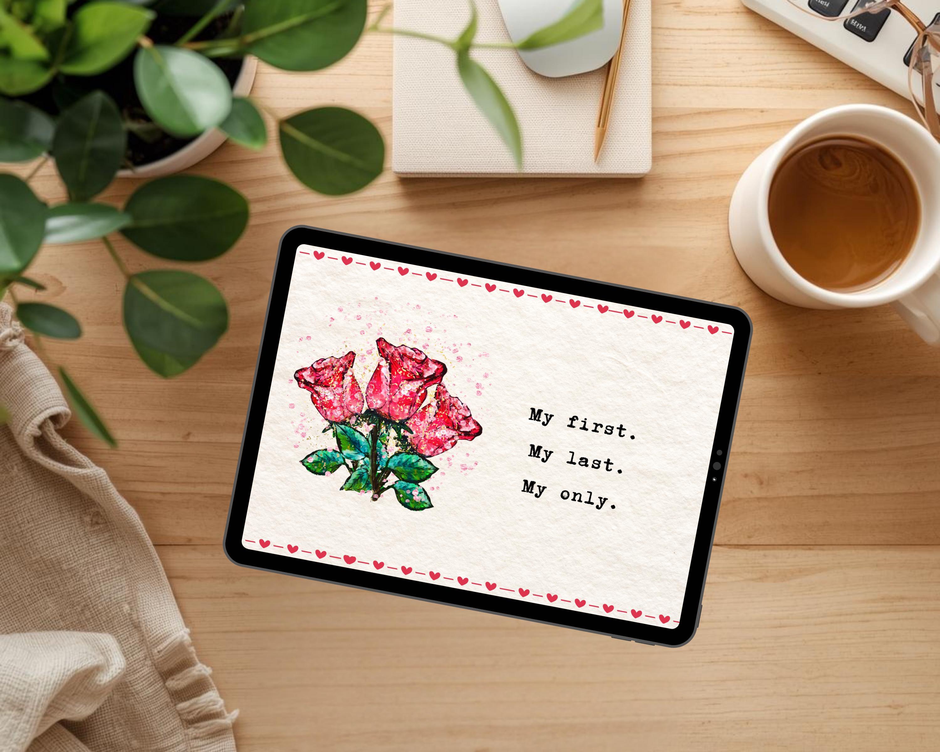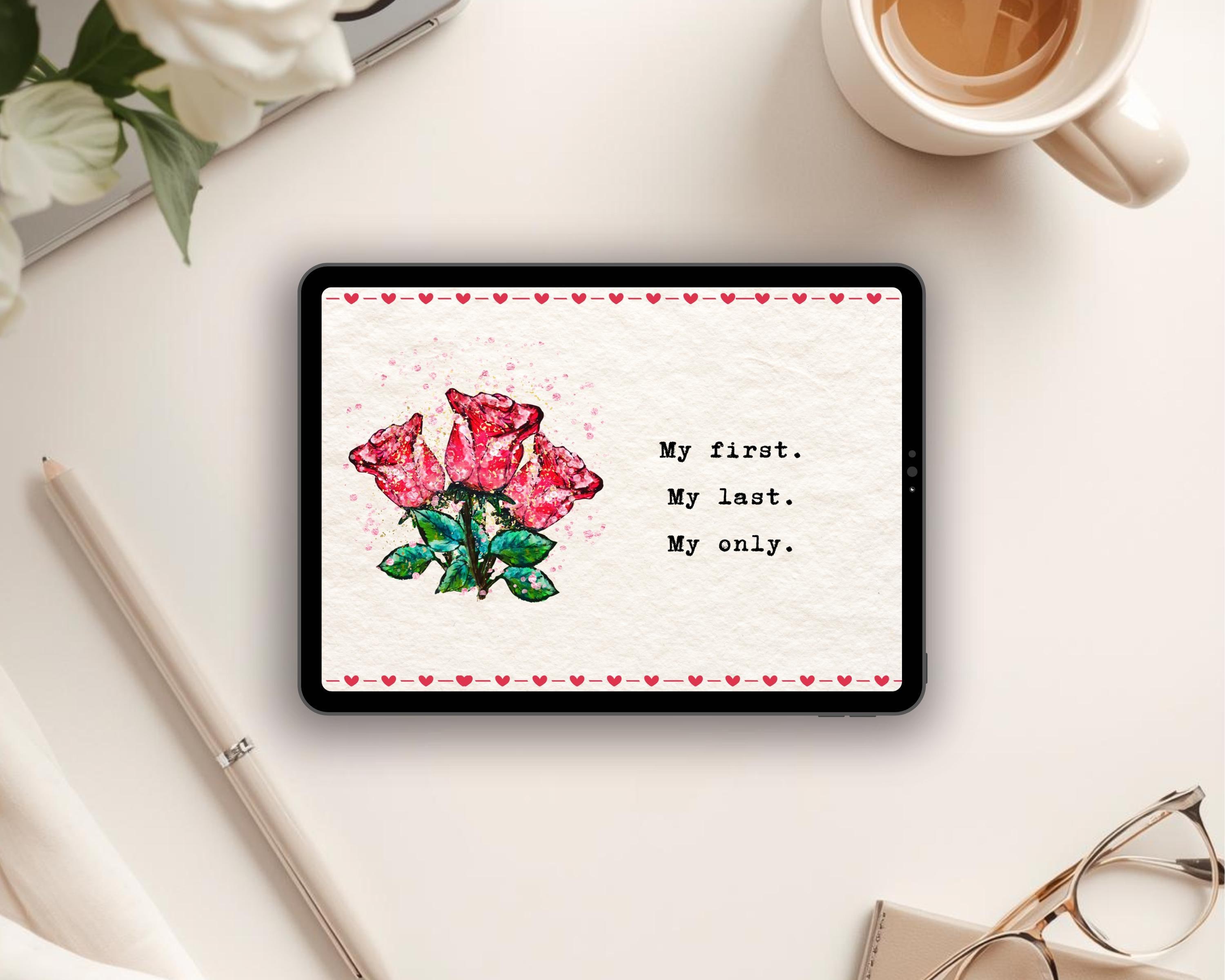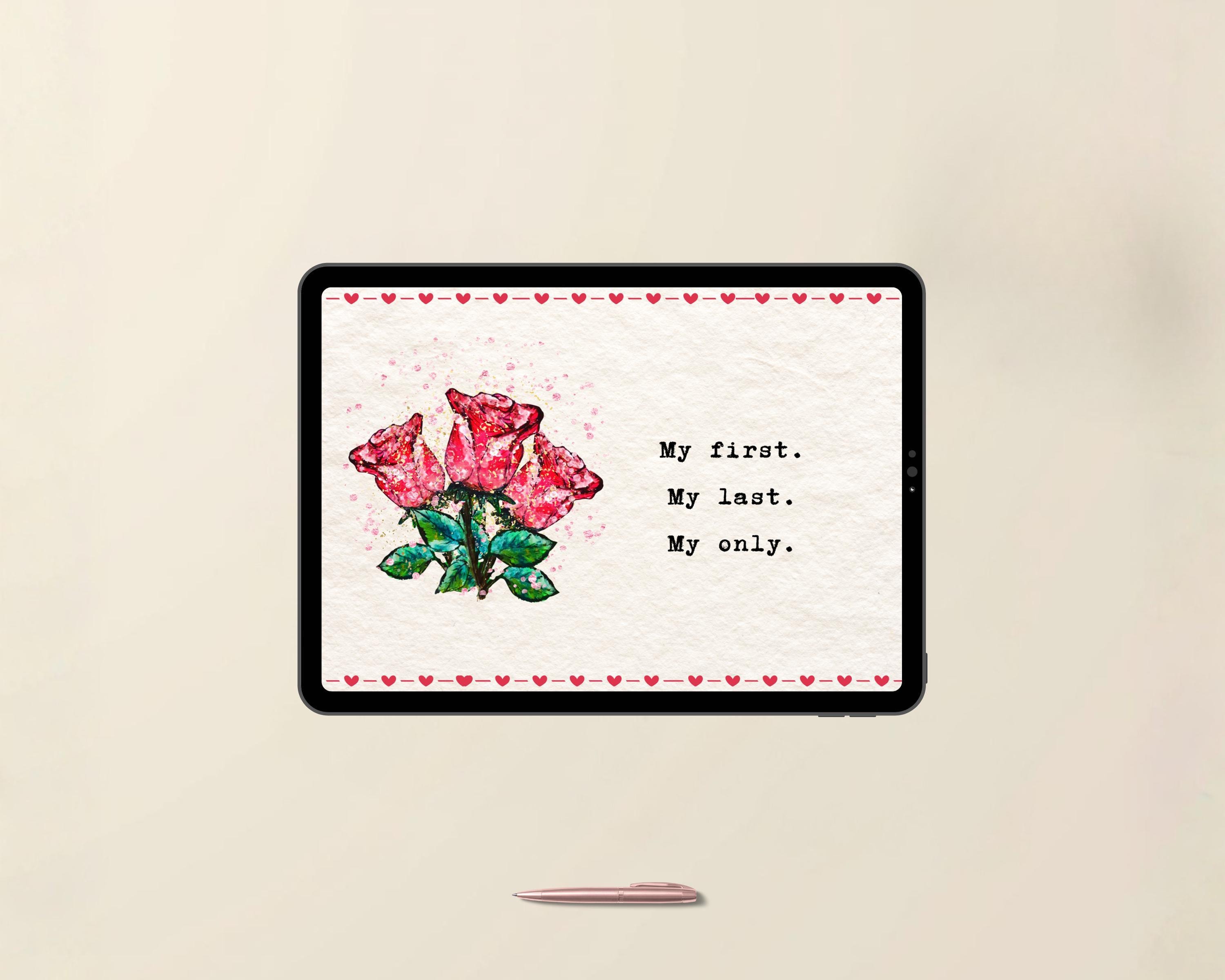 This message card is a romantic statement of devotion—perfect for celebrating emotional connection, commitment, and enduring love in your relationship. Each digital love card features a beautiful hand painted card design with soft watercolor roses and gentle animation, capturing heartfelt sentiment for your loved one.