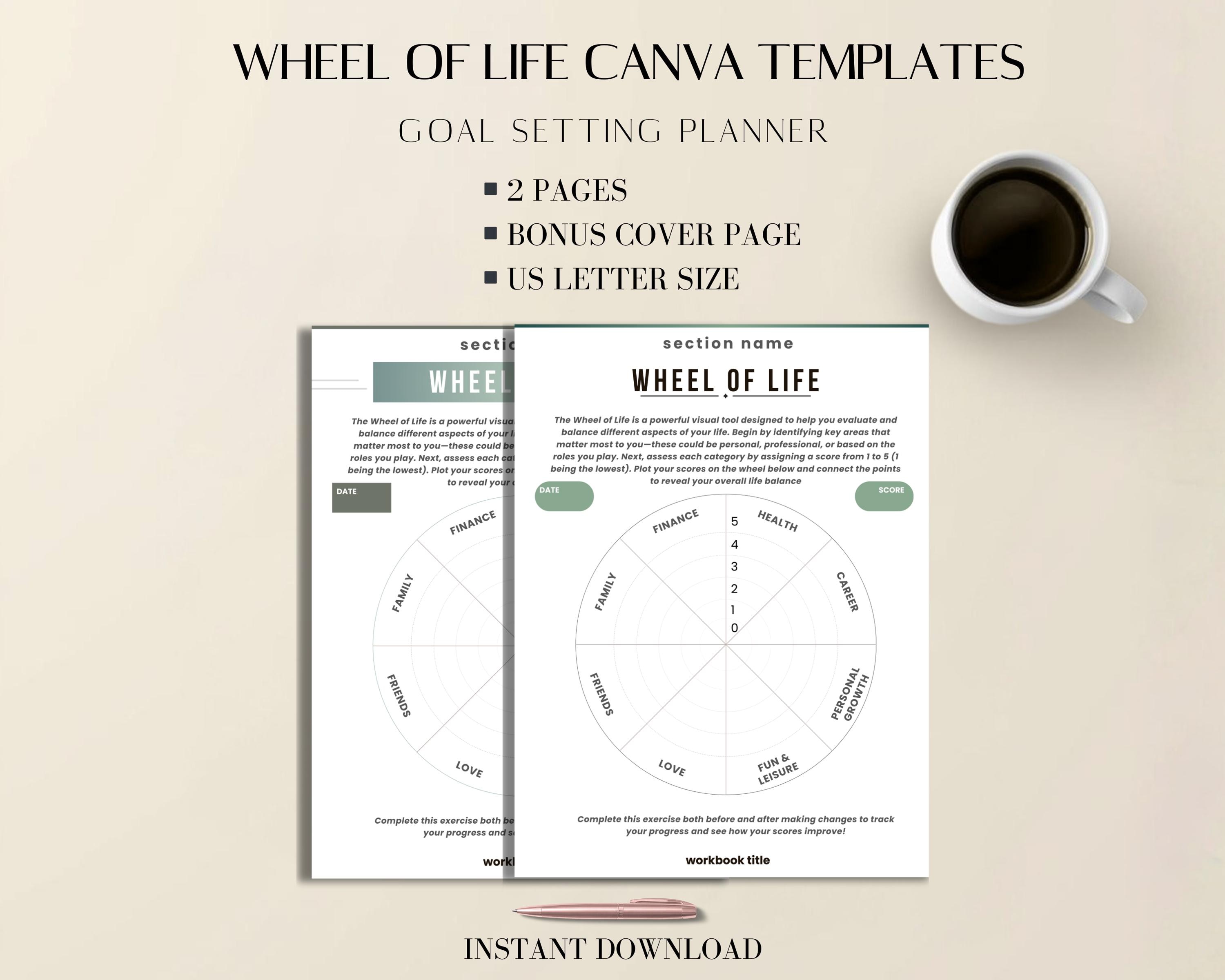 Reflect, realign, and support your self growth with this Wheel of Life Canva Template—a minimal design goal planner, life tracker, and self reflection worksheet crafted for women entrepreneurs, coaches, and anyone seeking intentional growth. This women planner doubles as a powerful coaching tool, blending practical balance sheet elements with creative canva templates for your journey.