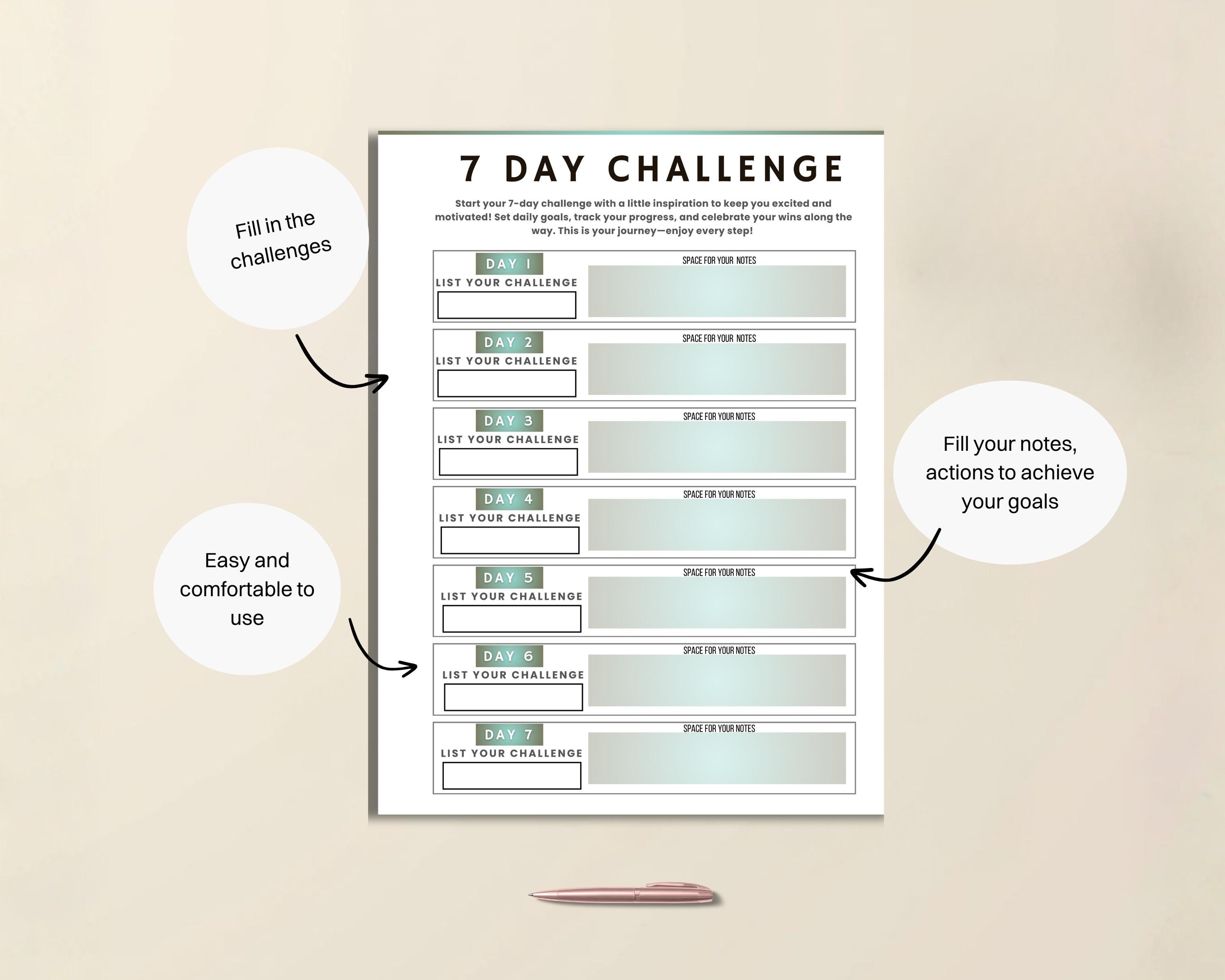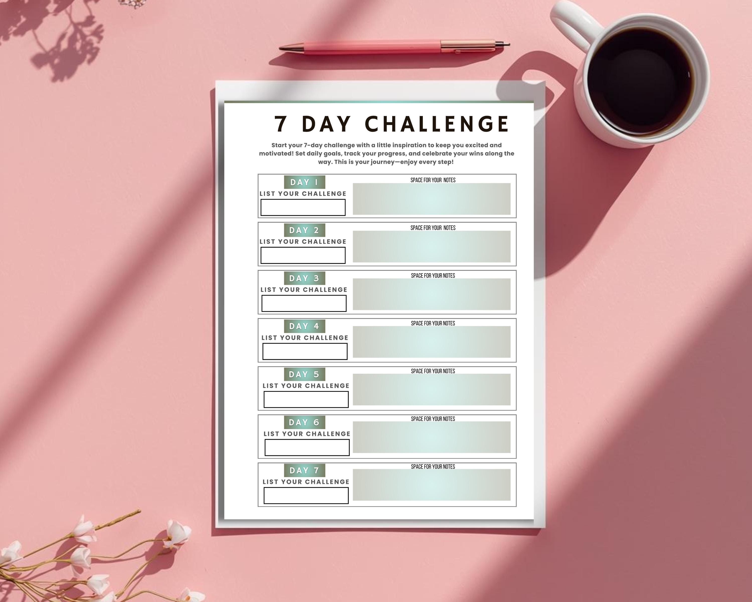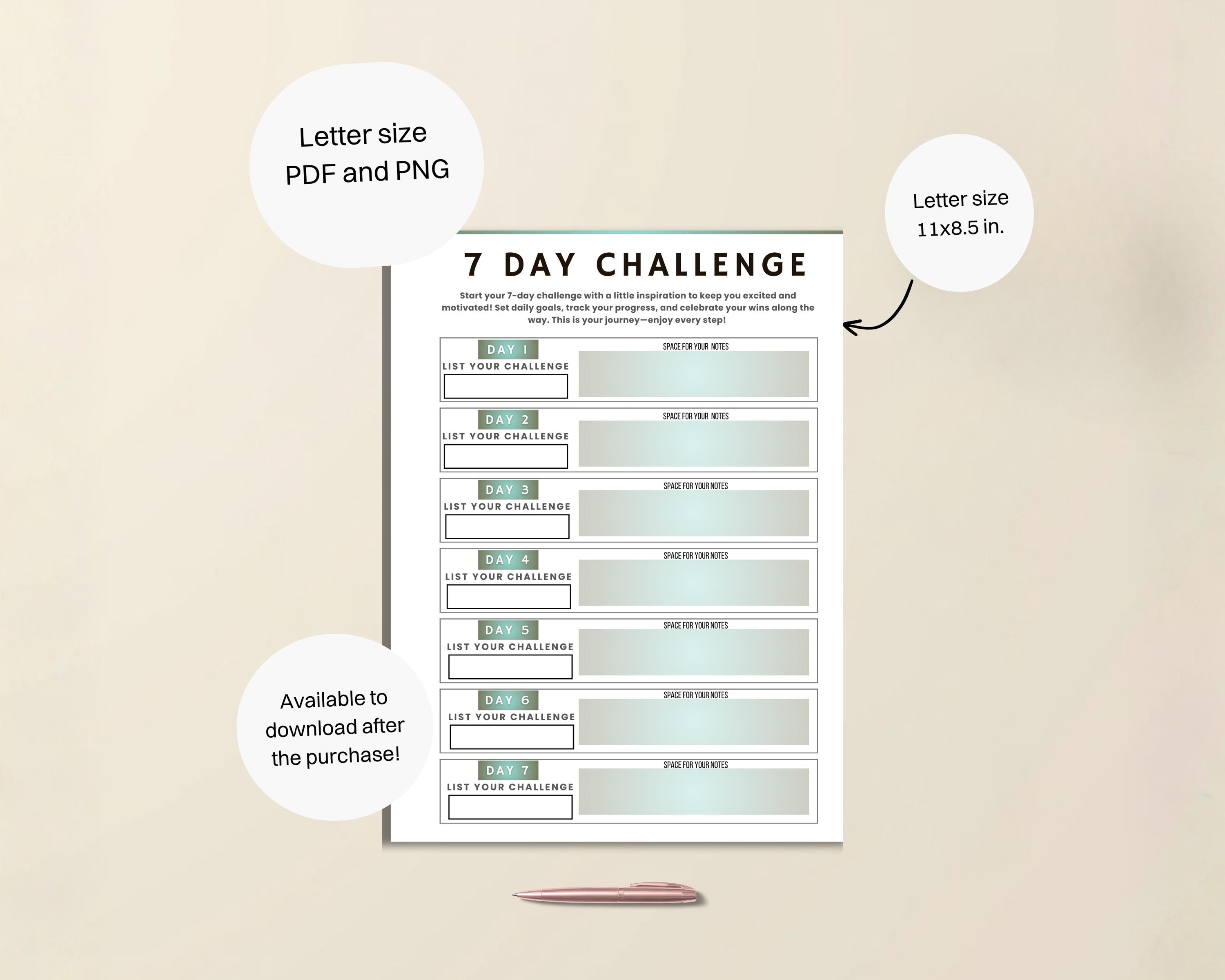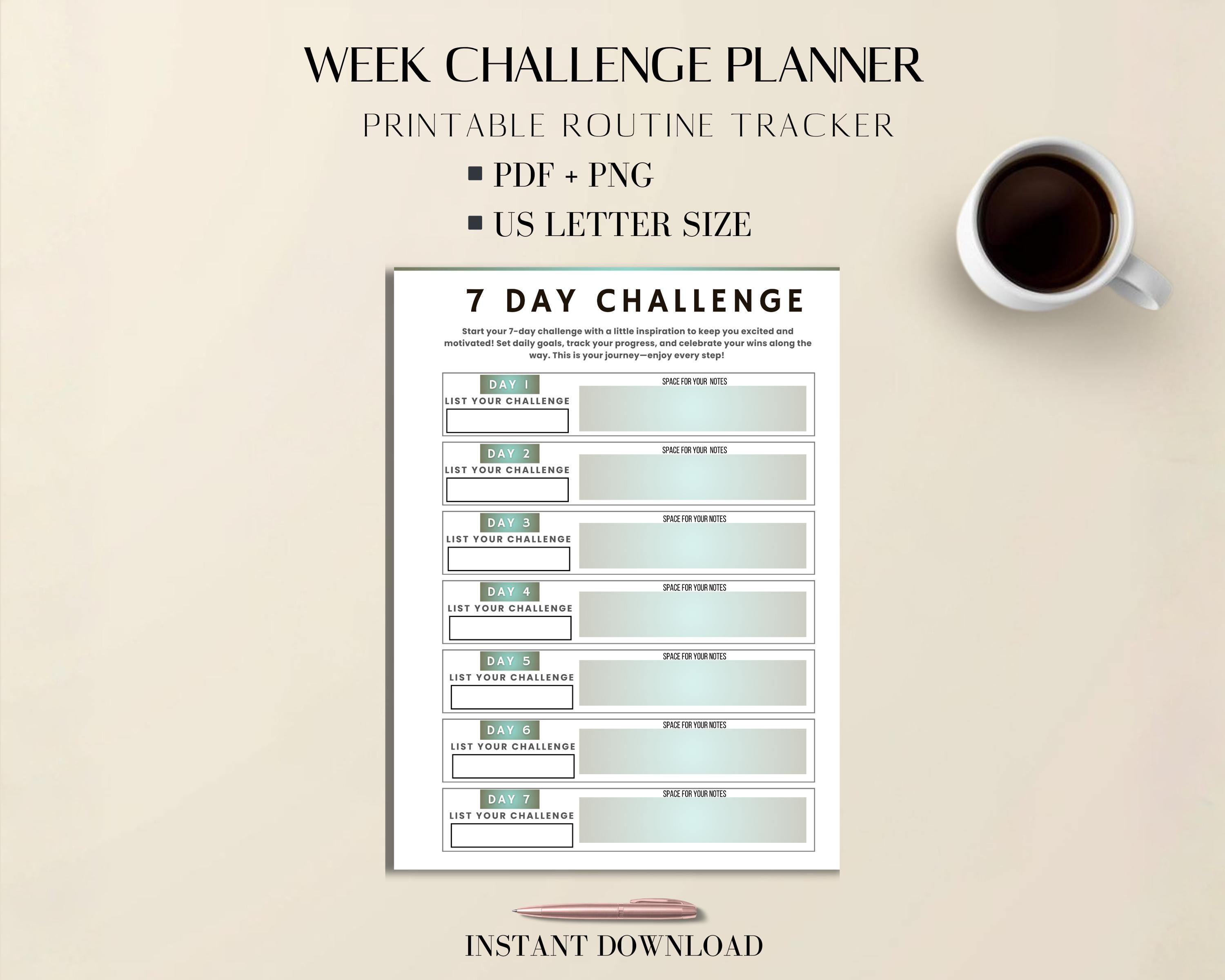 Week Challenge Planner | Printable Routine Tracker | Goal & Habit Journal | PDF + PNG | US Letter Size