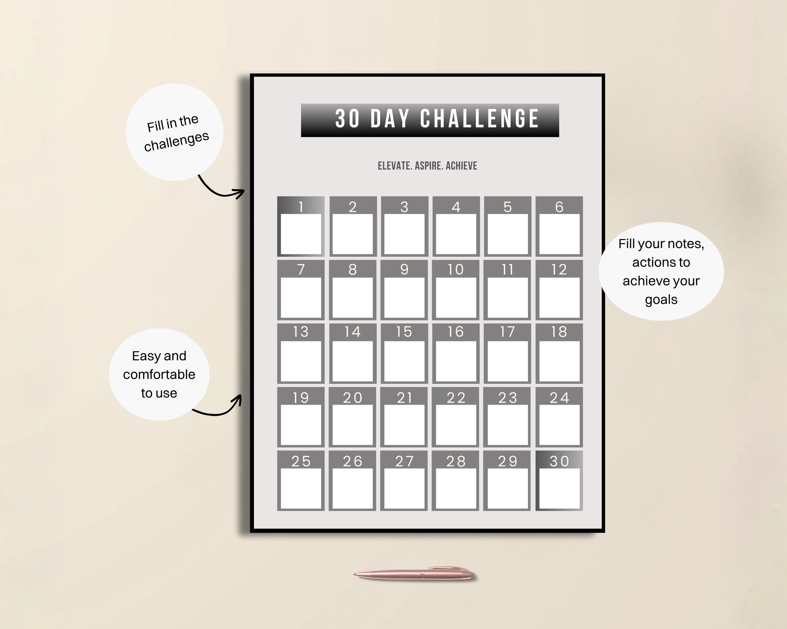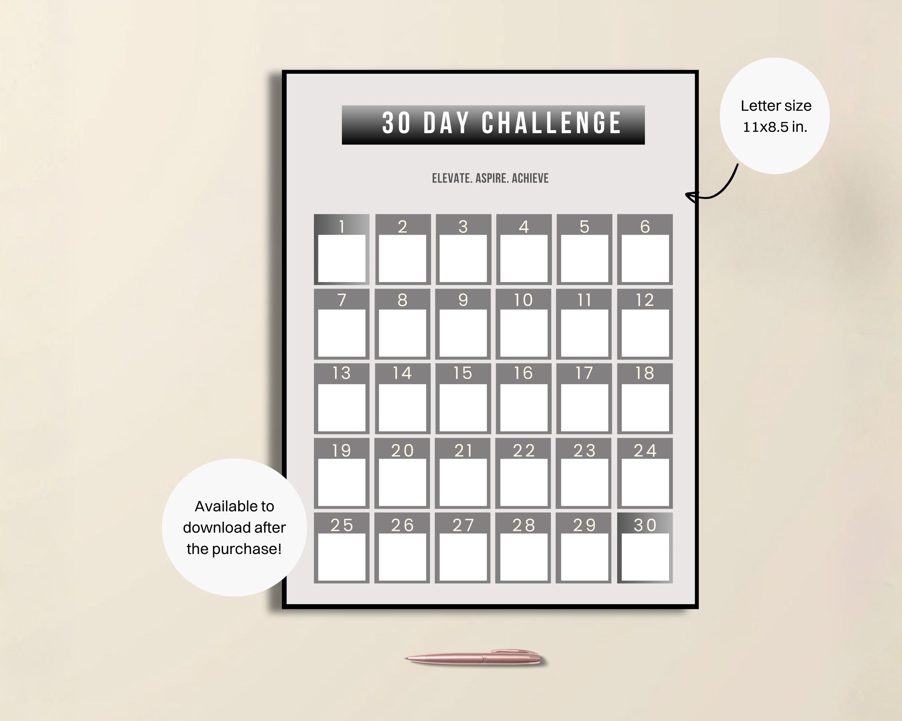 Whether you’re focusing on self-care, wellness, or productivity, this printable keeps your challenge simple, gentle, and consistent — one day at a time.