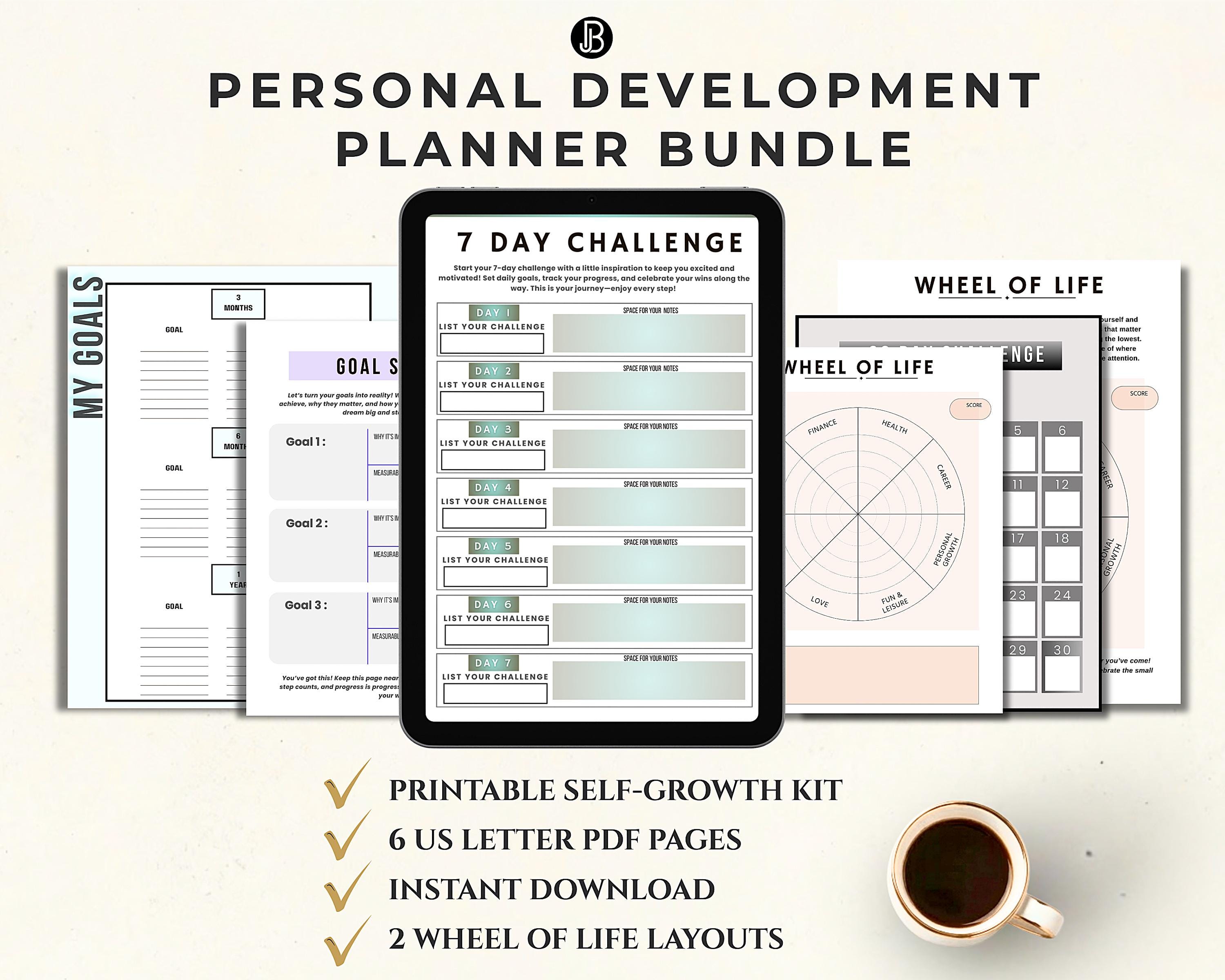 Personal Development Planner Bundle: Goal Setting, Wheel of Life, Printable Weekly Planner, Monthly Goal Planner, US Letter PDF