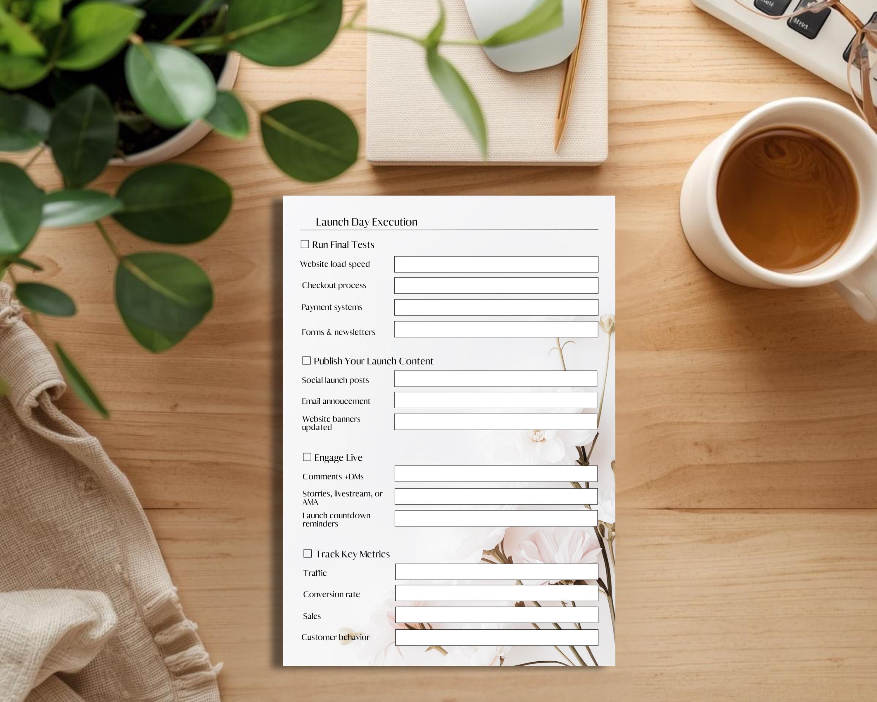 A premium, minimal, modern layout that helps you plan, organize, and execute your business launch smoothly — while matching your brand aesthetic.