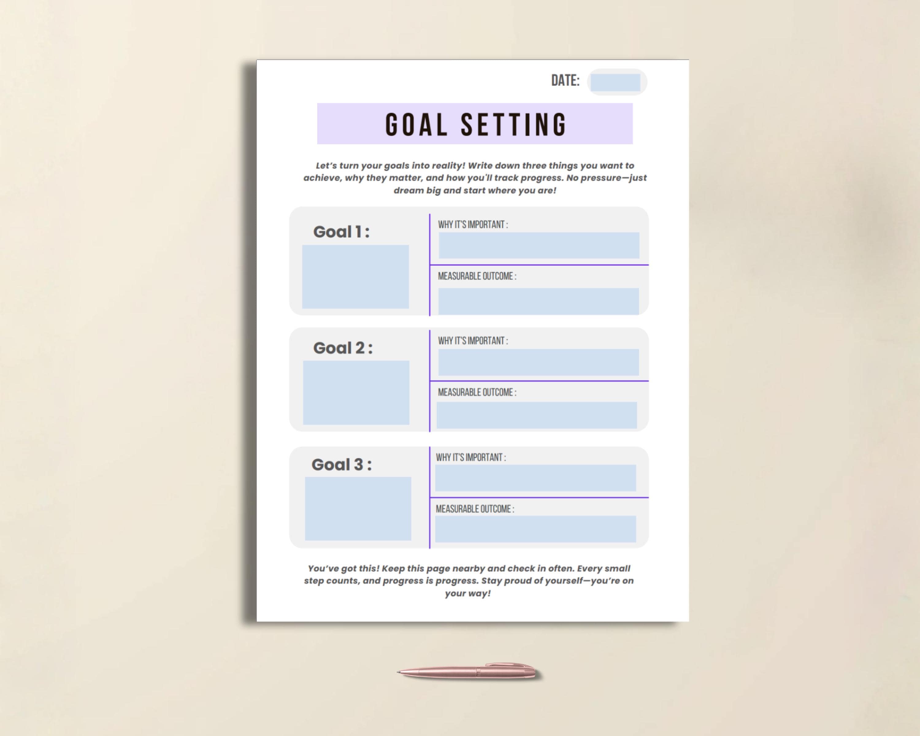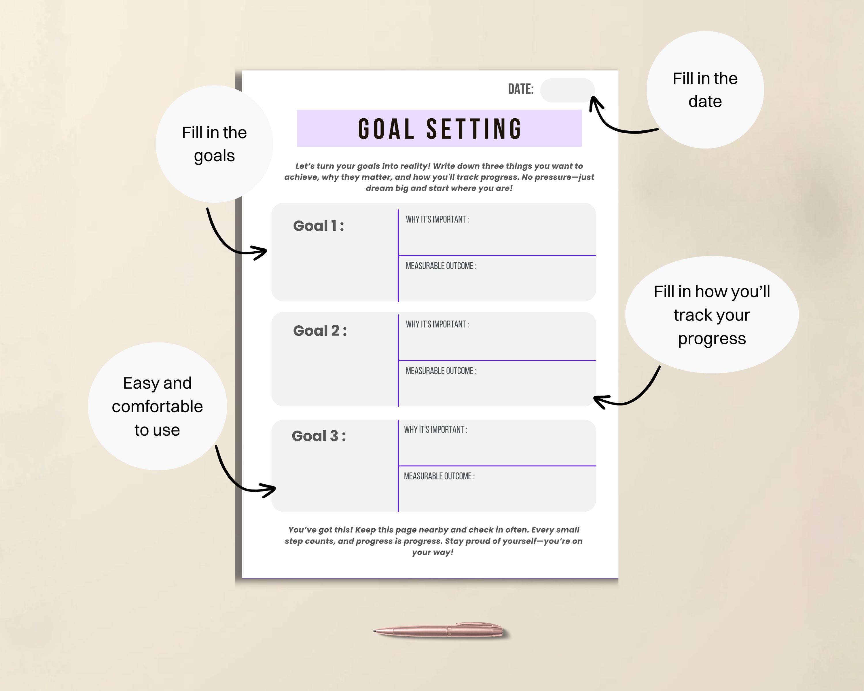Whether you’re planning business goals or personal growth, this simple yet effective Fillable Goal Setting Planner brings structure and motivation to your week.
