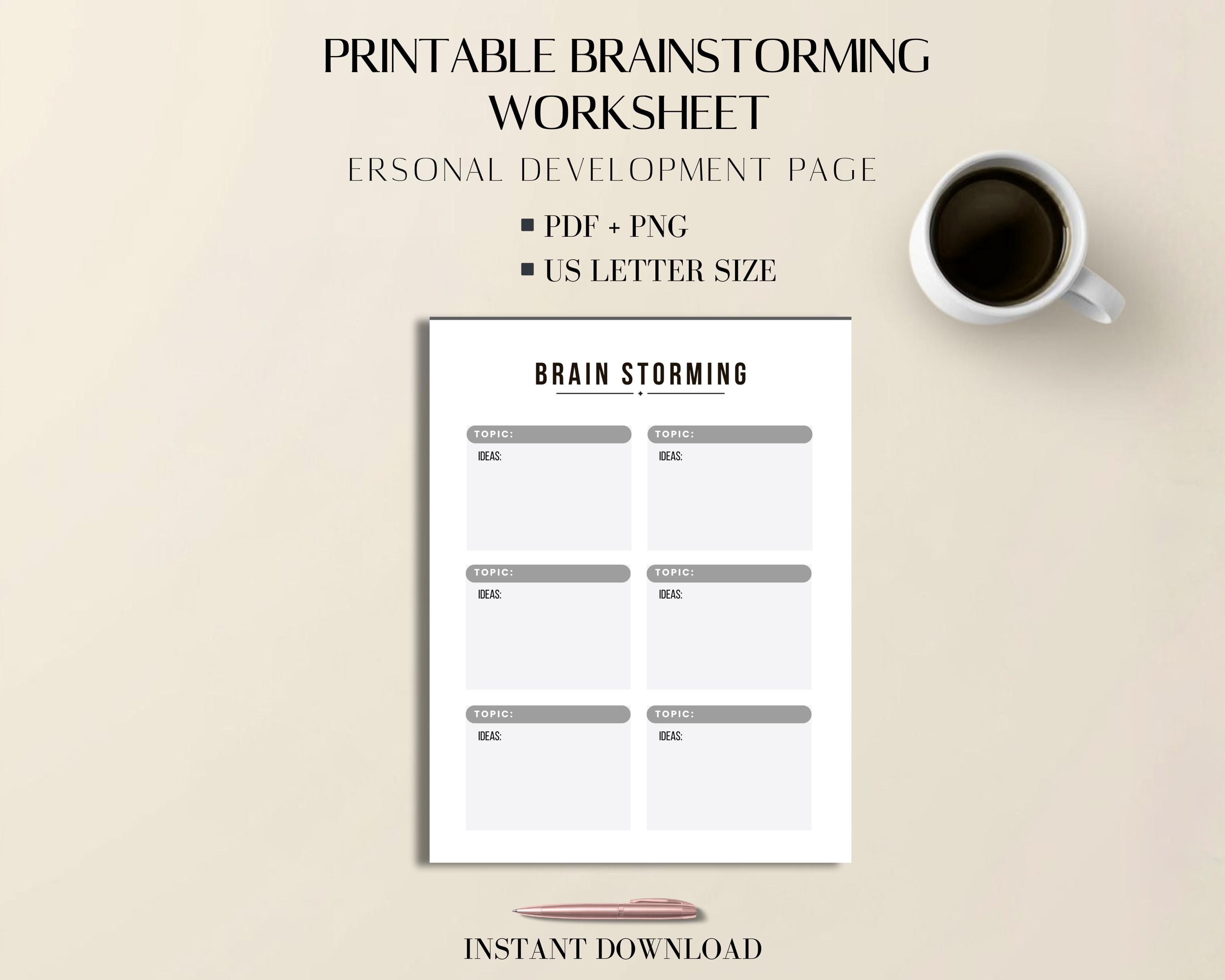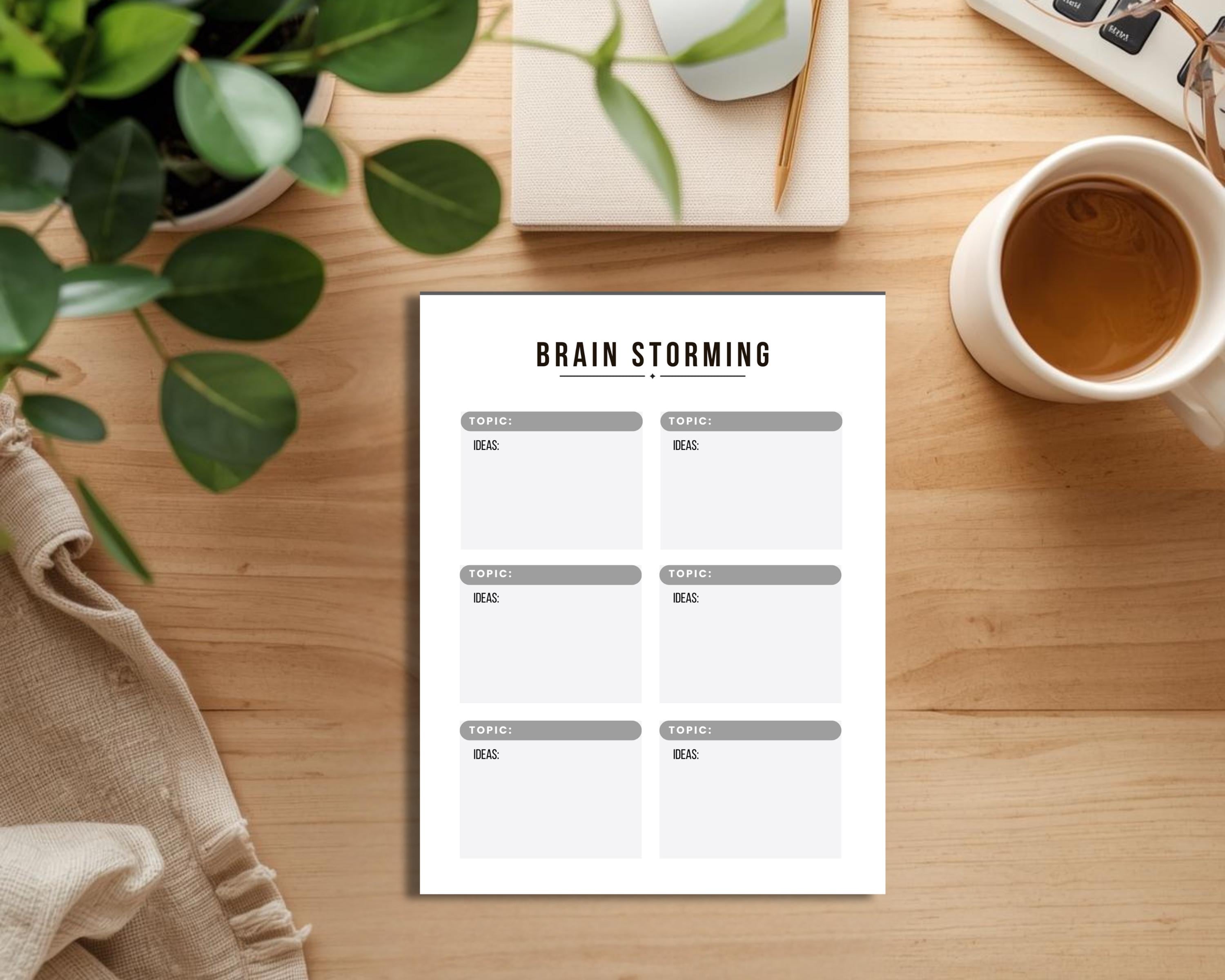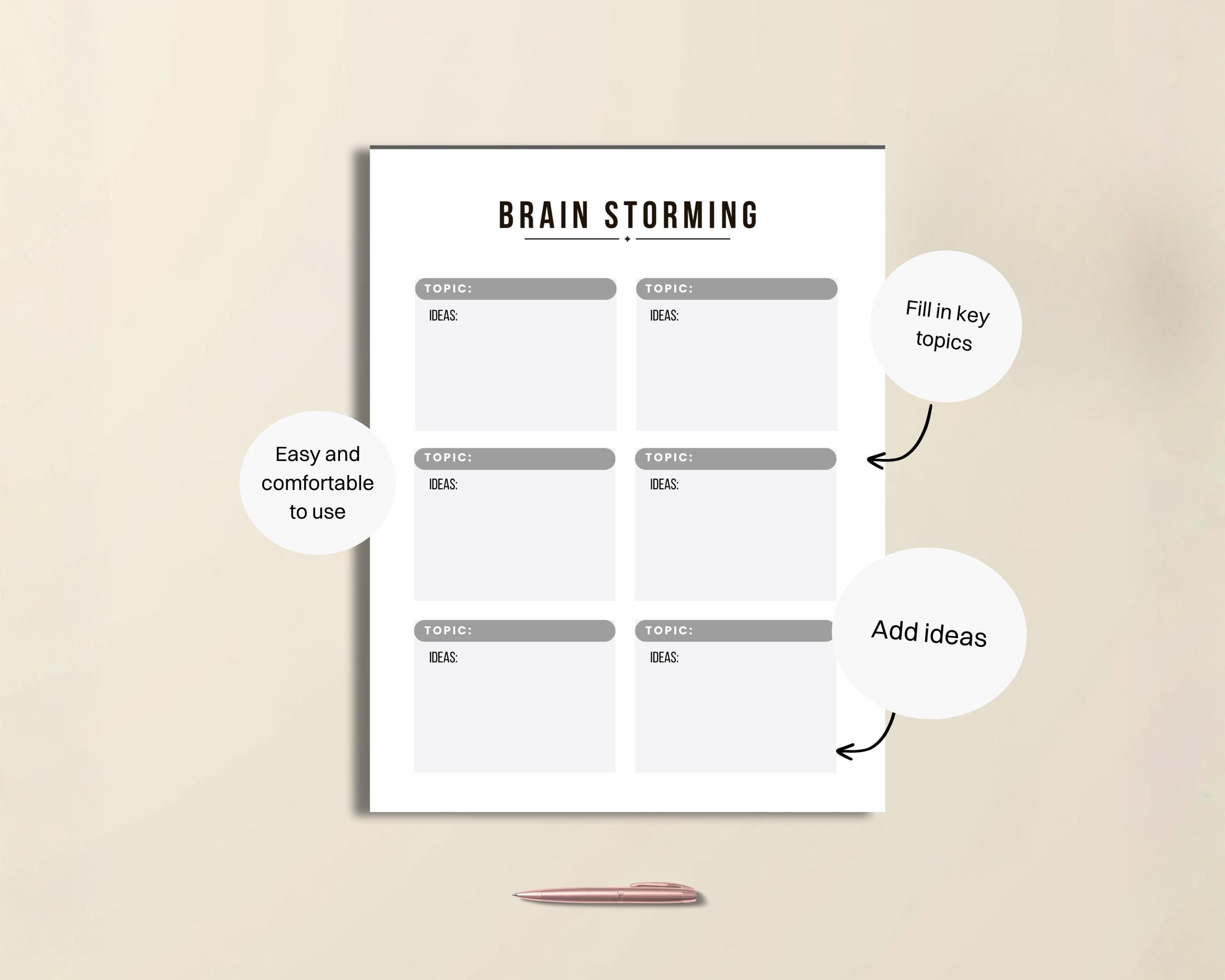 This brainstorming sheet is designed to help you map out your ideas with ease, making the process straightforward and clear. Use it as part of your business workbook, project planner, or solopreneur planner to organize thoughts and move from scattered ideas to practical steps. It doubles as a fillable brainstorm, ideal for mind mapping sheet needs and idea mapping sheets for any entrepreneur tools or personal development goals you might have.