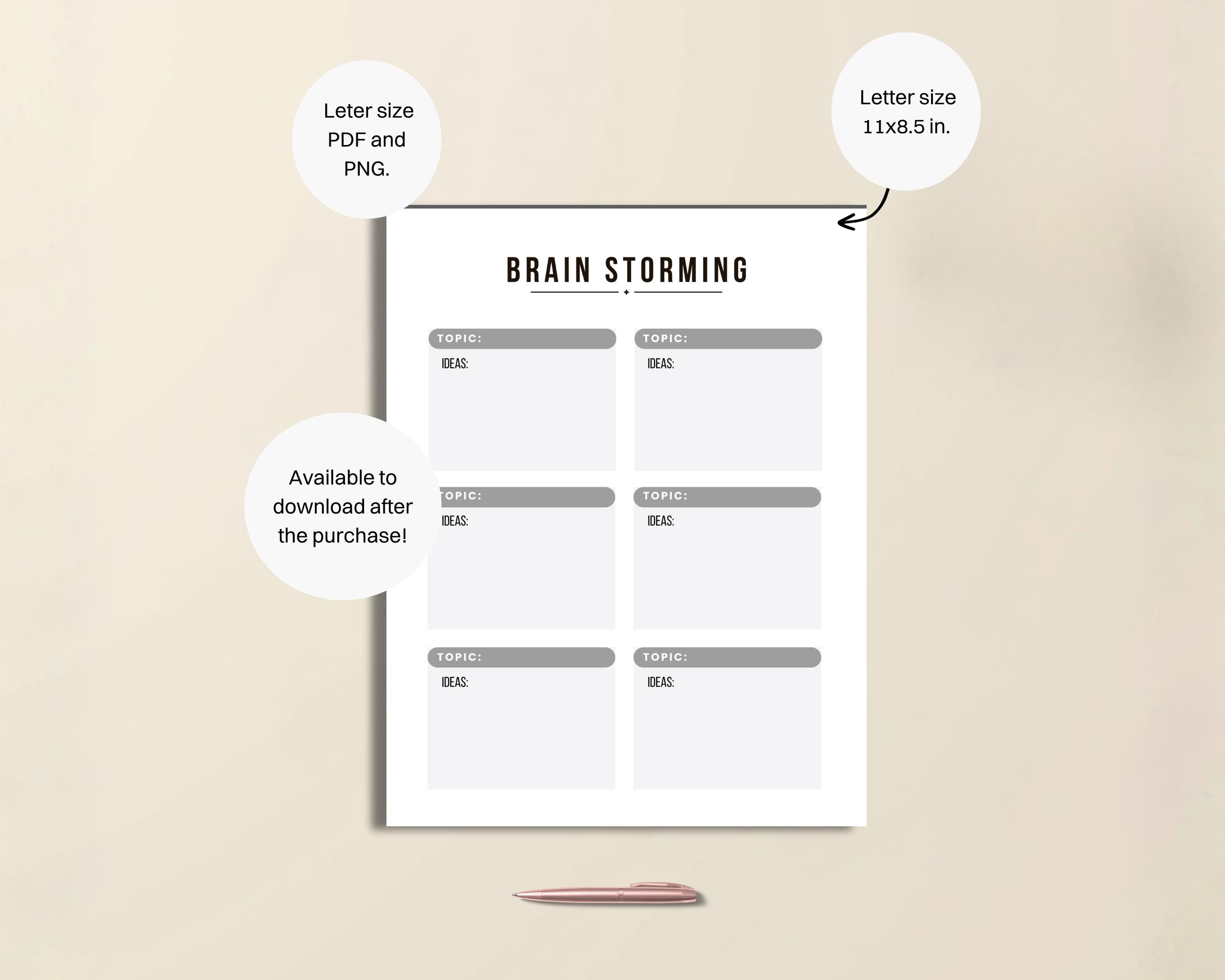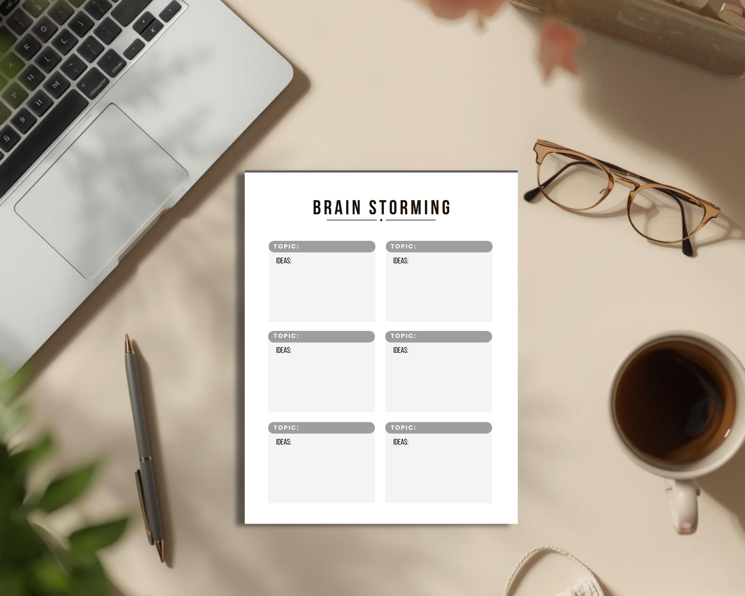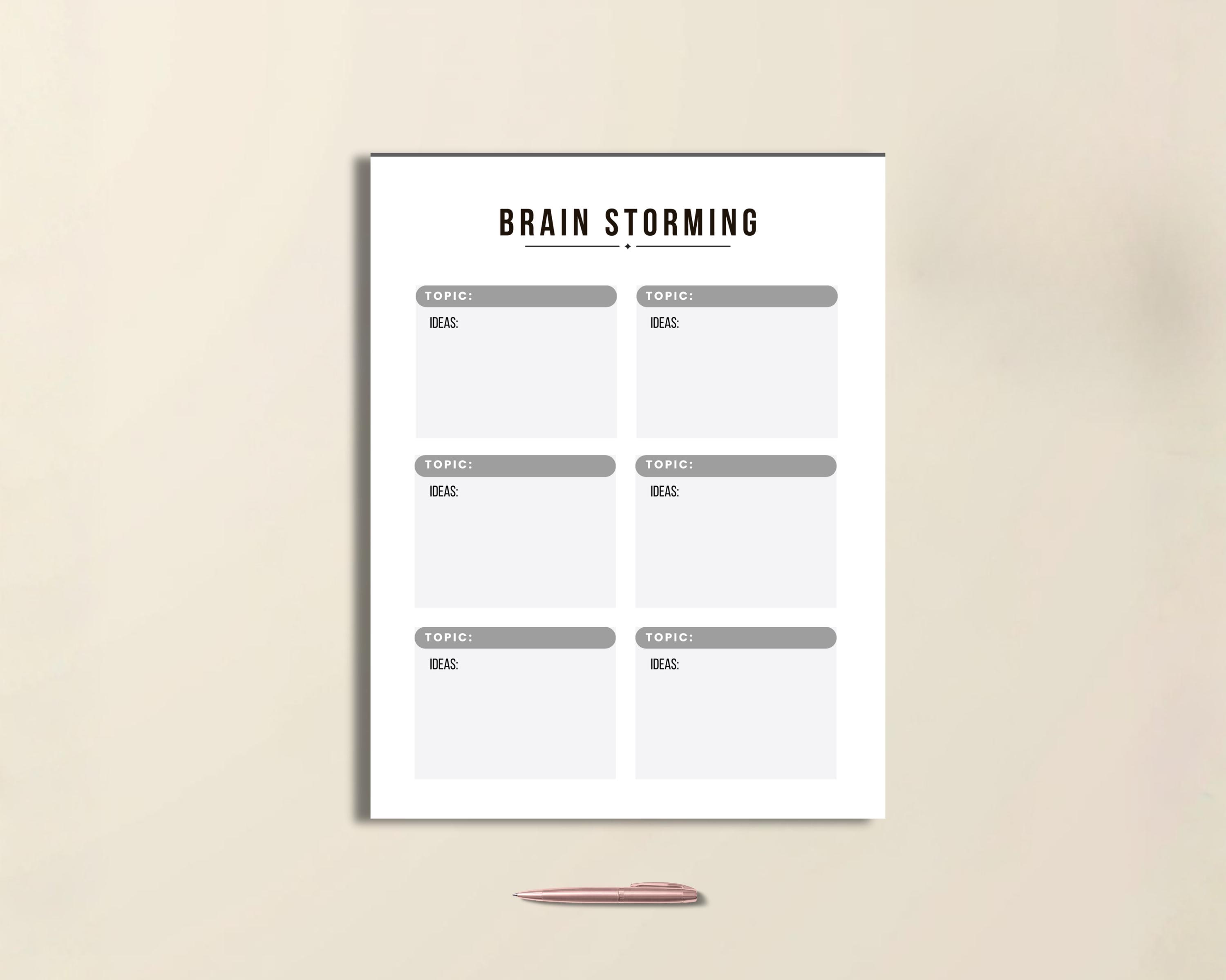 This brainstorming sheet is designed to help you map out your ideas with ease, making the process straightforward and clear. Use it as part of your business workbook, project planner, or solopreneur planner to organize thoughts and move from scattered ideas to practical steps. It doubles as a fillable brainstorm, ideal for mind mapping sheet needs and idea mapping sheets for any entrepreneur tools or personal development goals you might have.