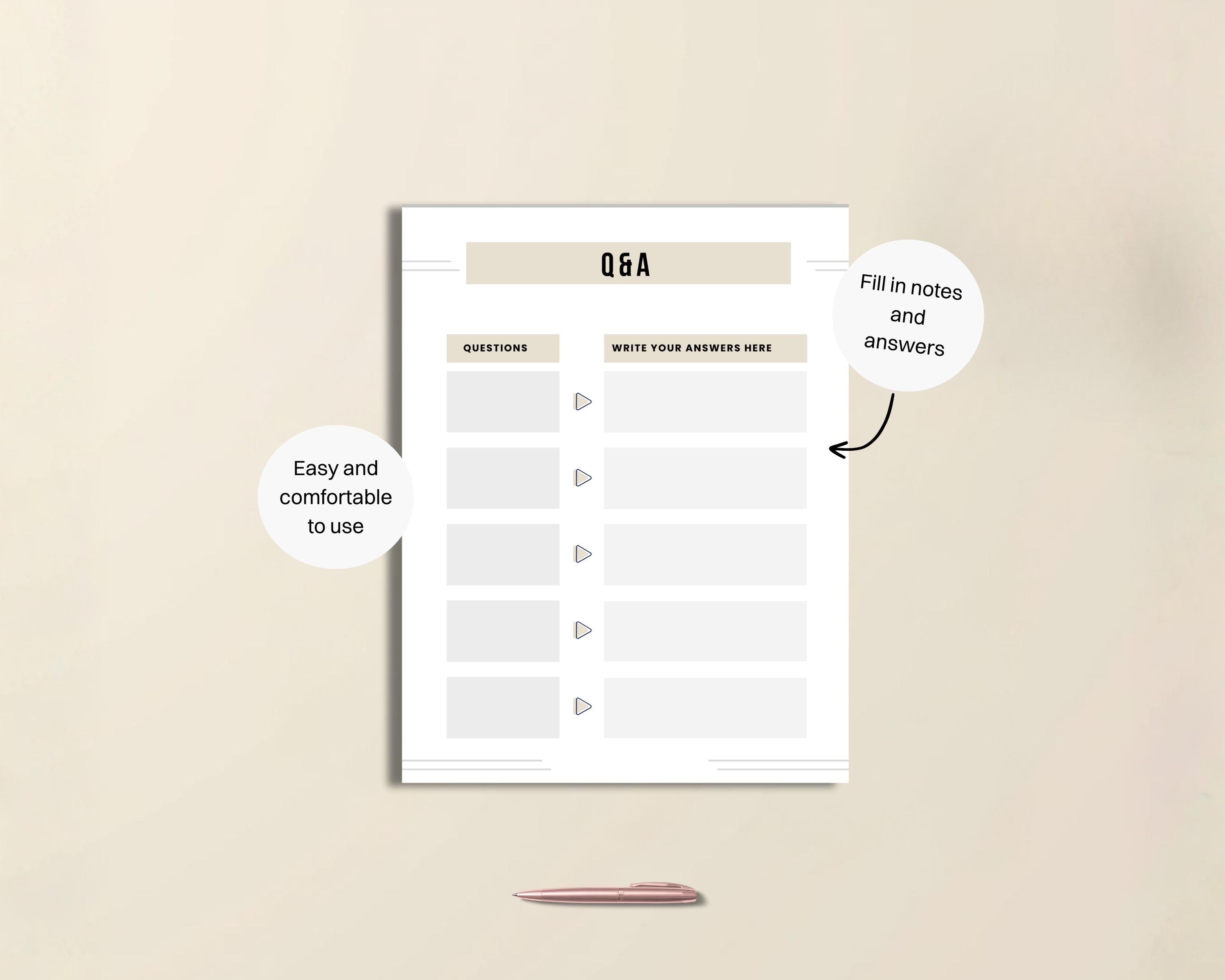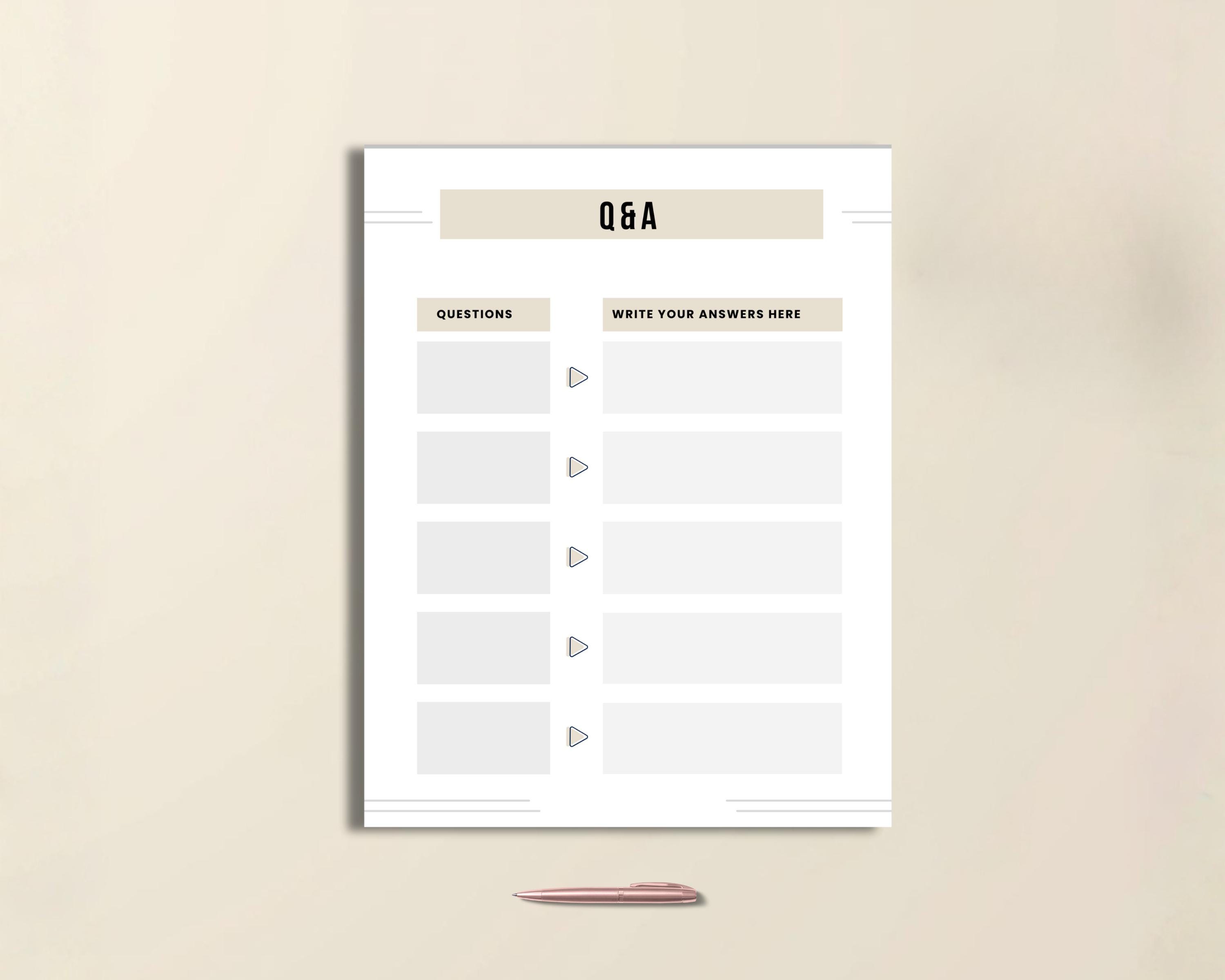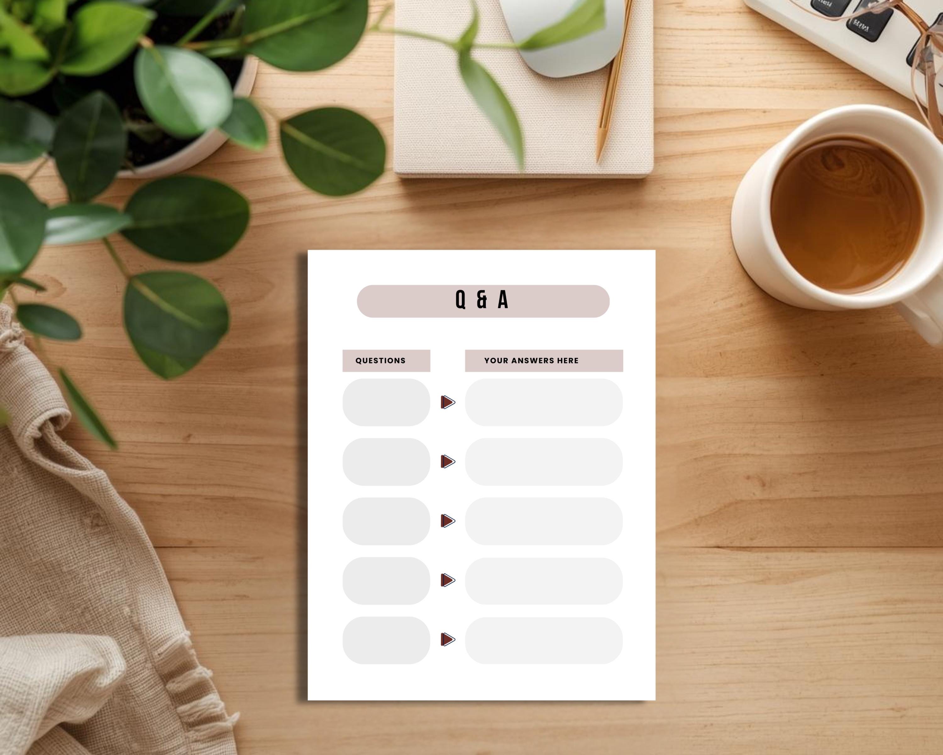 These printable minimal coaching worksheets help you keep coaching sessions focused and productive, making it simple to guide clients and track their progress. Each page is designed for practical coaching and can easily be incorporated into your client workbook or coaching bundle pack. The Q&A templates are editable, so you can customize them to match your branding ready PDF or use as an evergreen organizer to streamline your business coaching process.