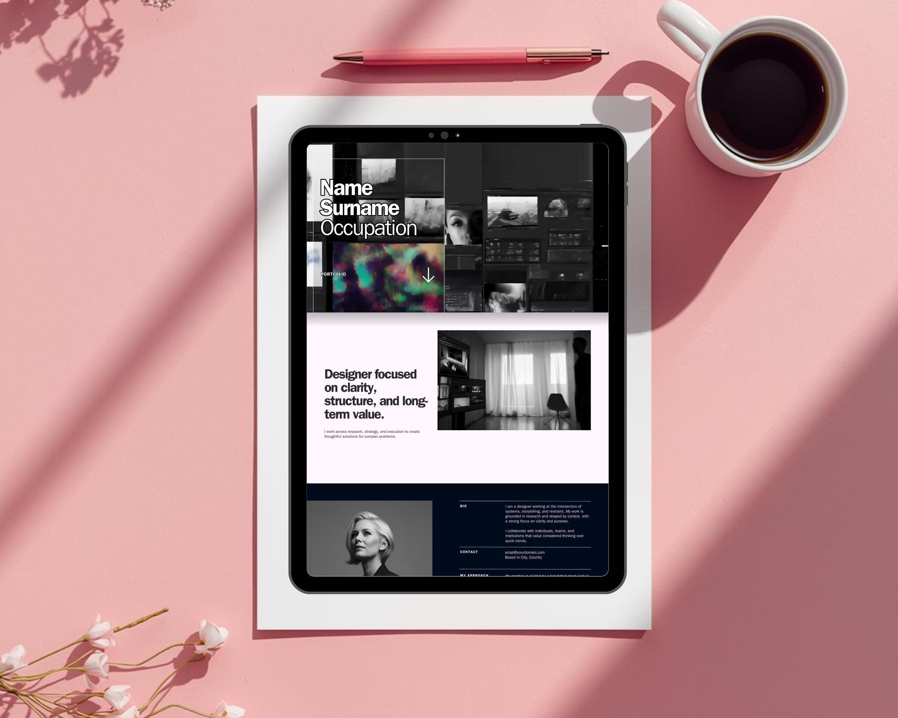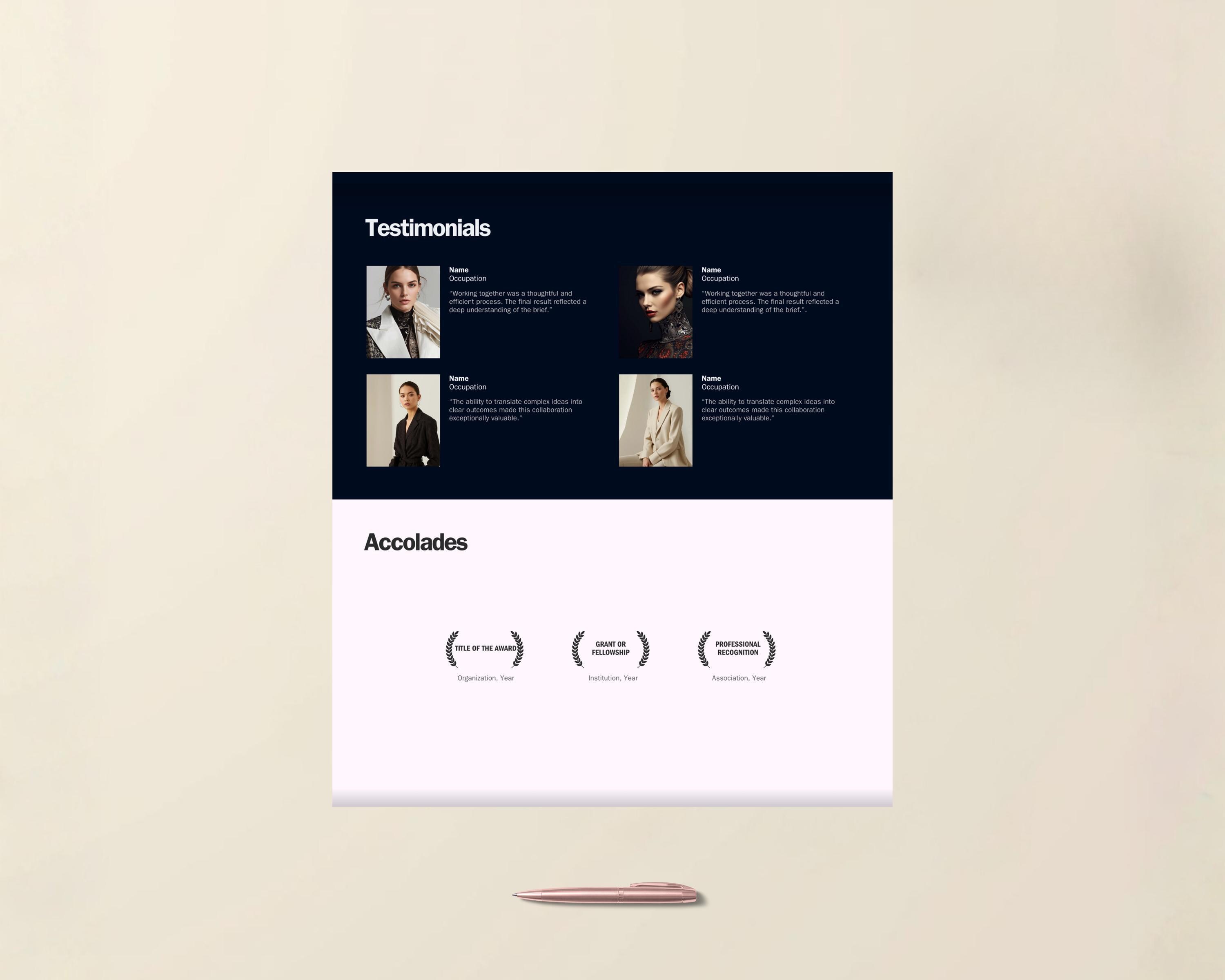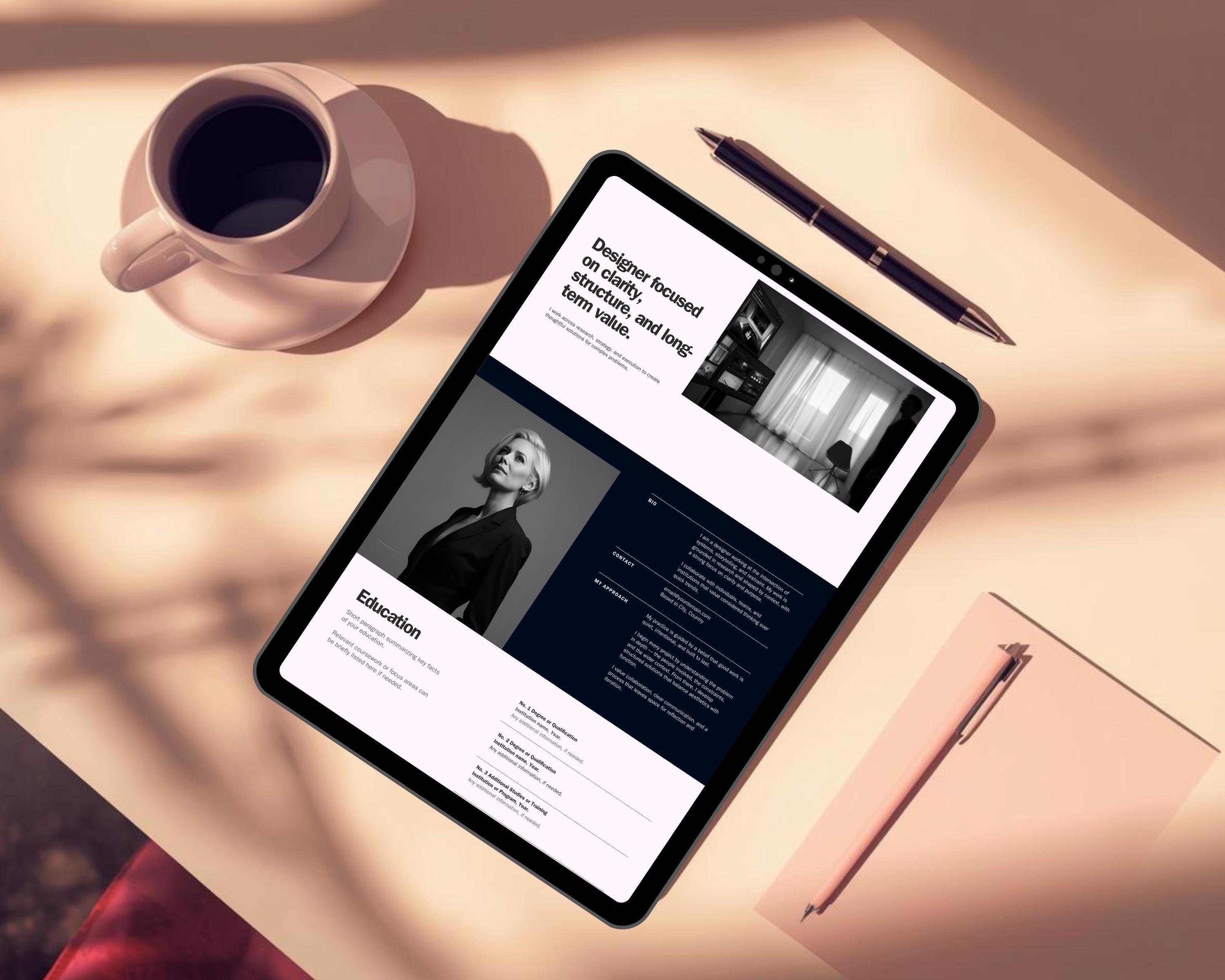 This Canva Portfolio Website Template is designed for creatives and professionals who want a modern credential showcase for their achievements and narrative — not funnels, hype, or social media tricks.