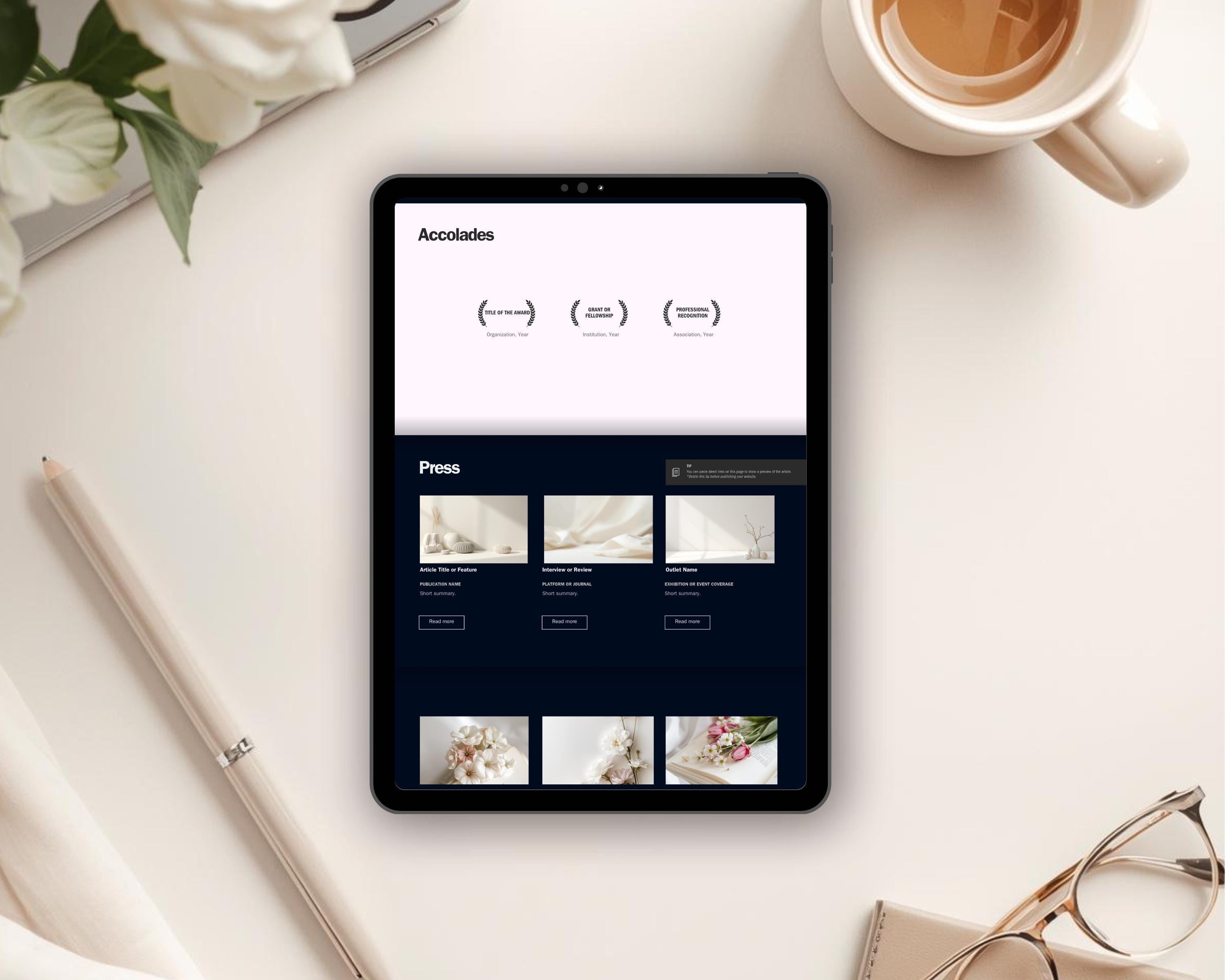 -Showcasing press mentions, testimonials, and accolades