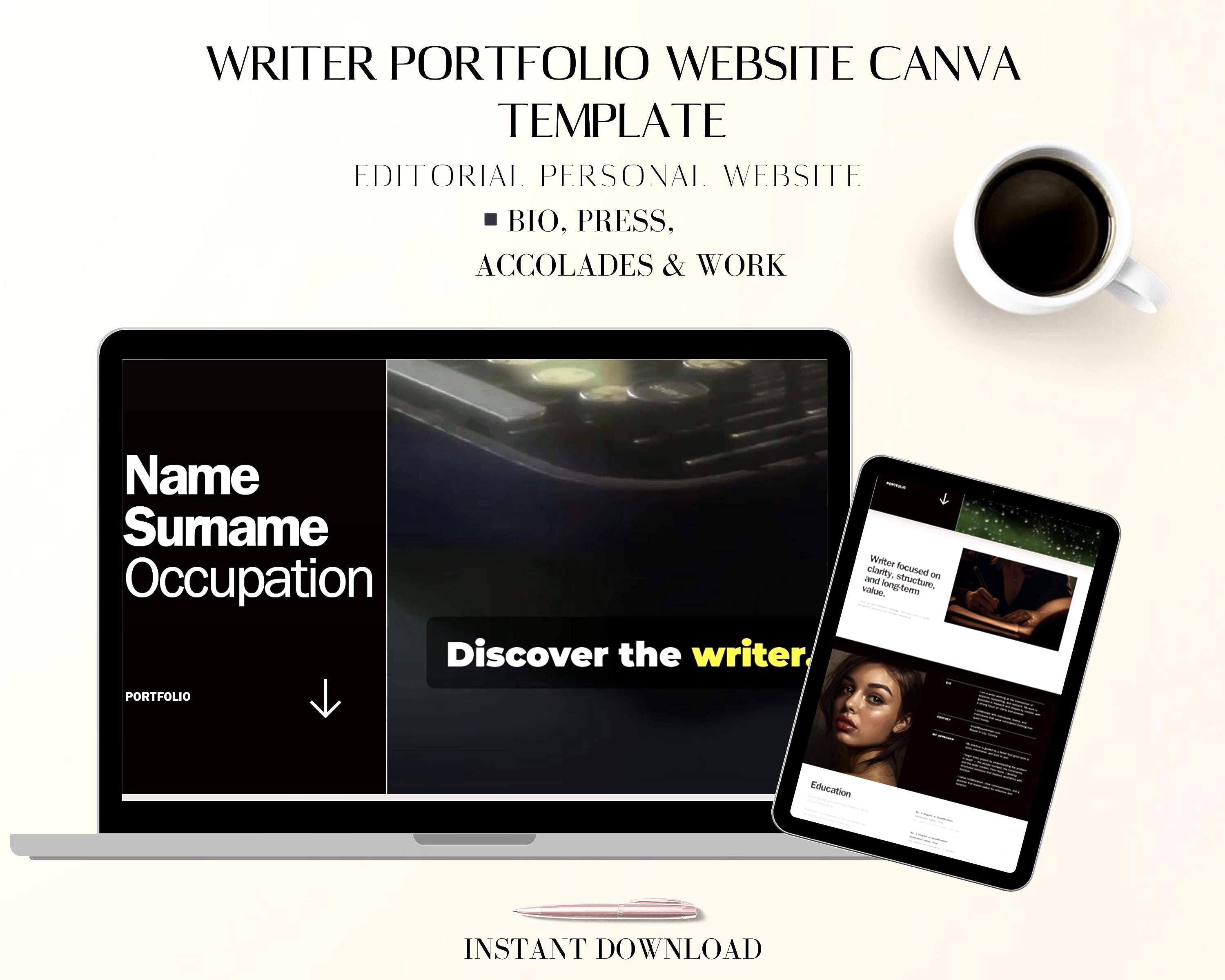 Launch your professional writer portfolio in minutes with this all-in-one Canva Website Template. Designed specifically for writers, journalists, and academics, this 10-section "no-code" site is the perfect, low-cost alternative to Squarespace or WordPress.