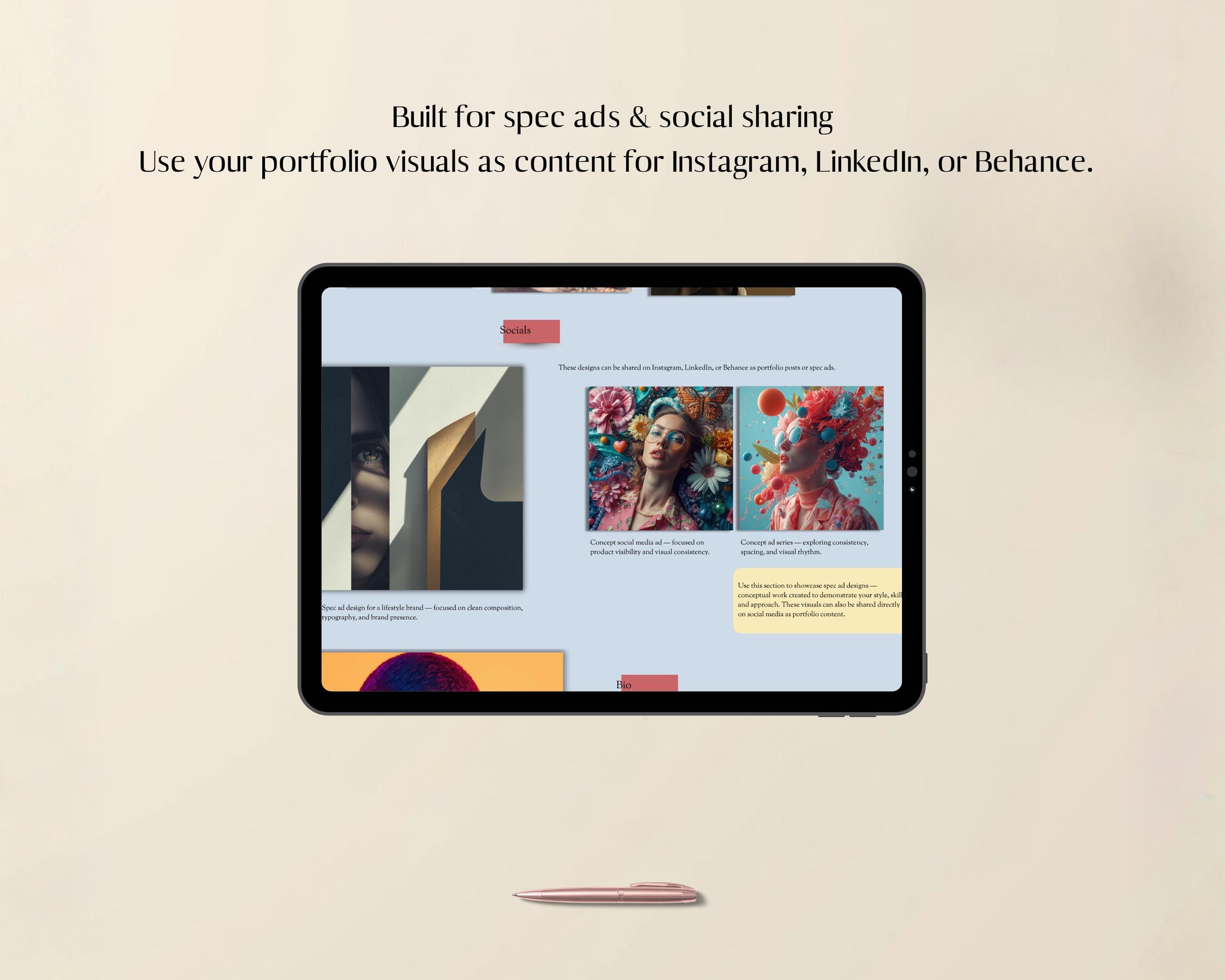 - Visual layouts made for showcasing your portfolio and social sharing