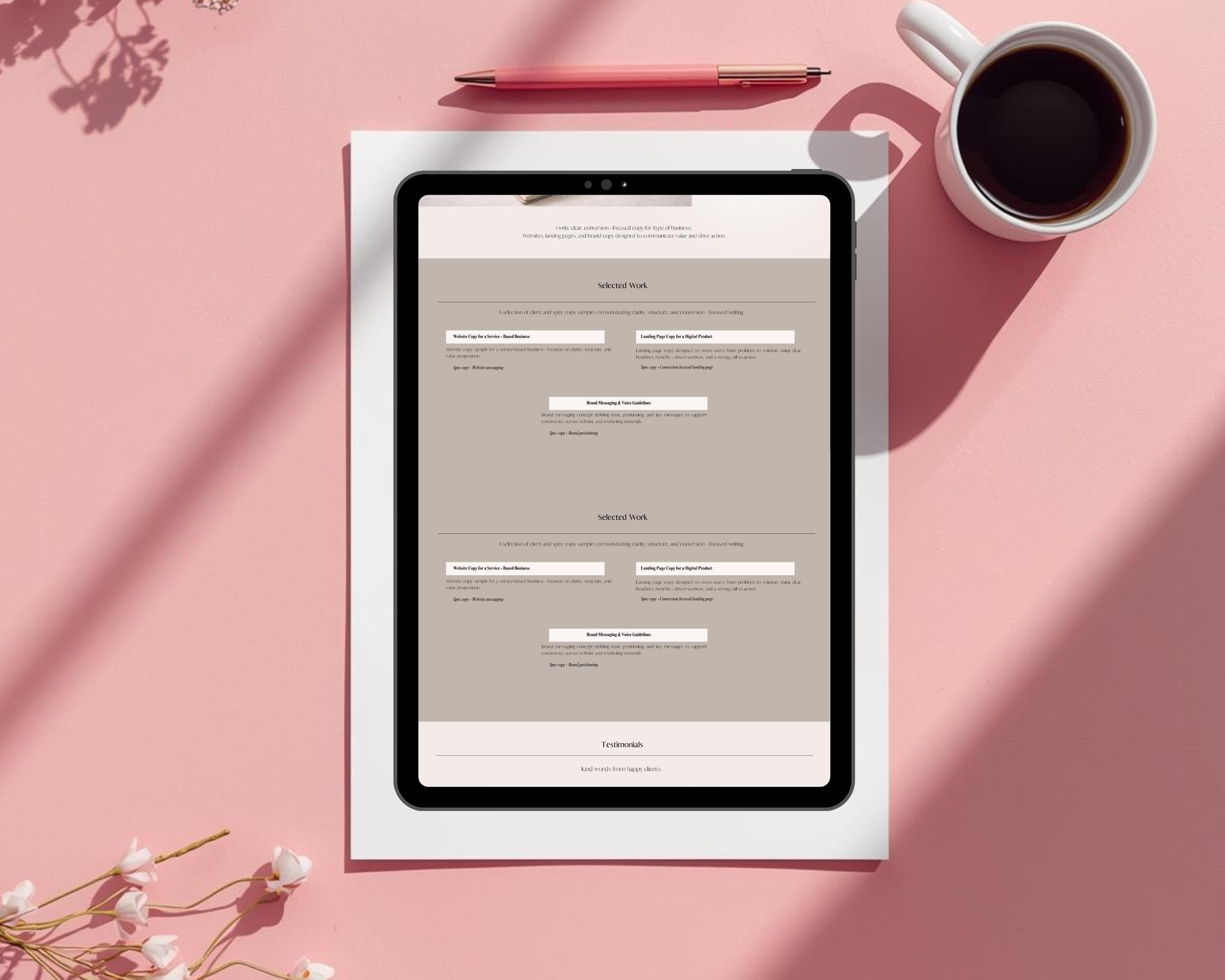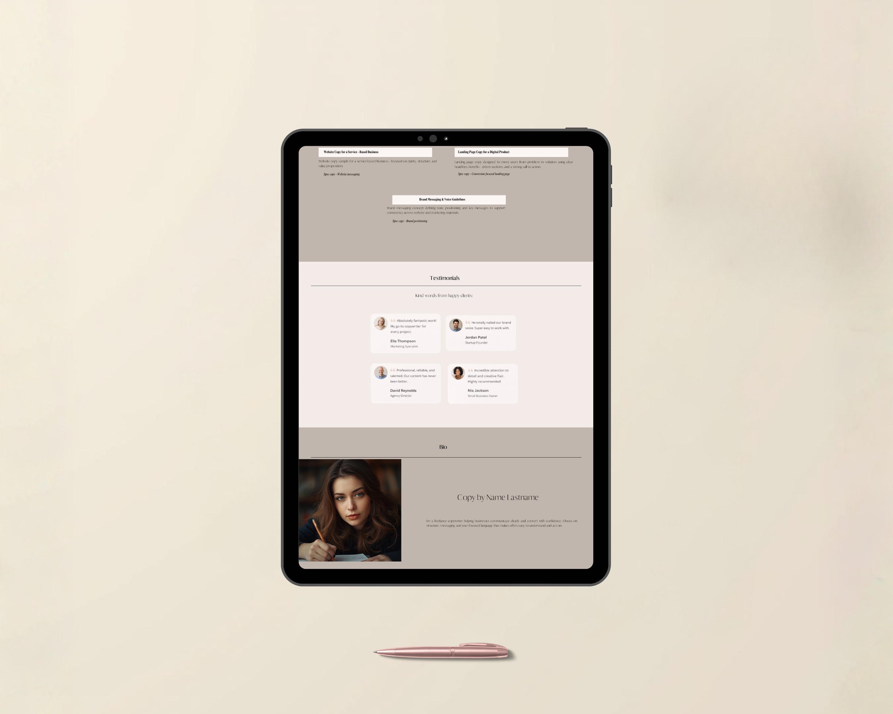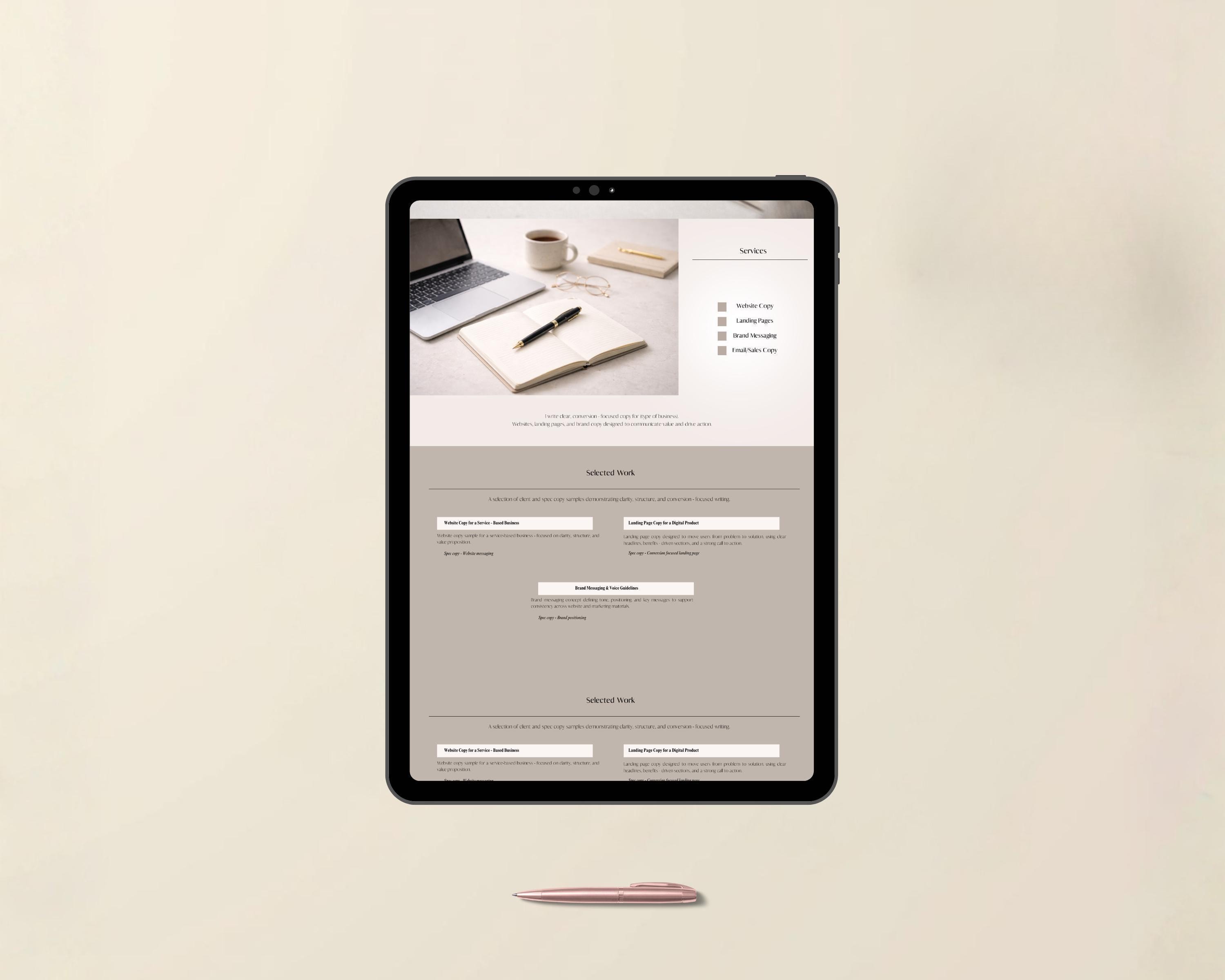 Perfect for copywriters who want a single link they can confidently share with potential clients.