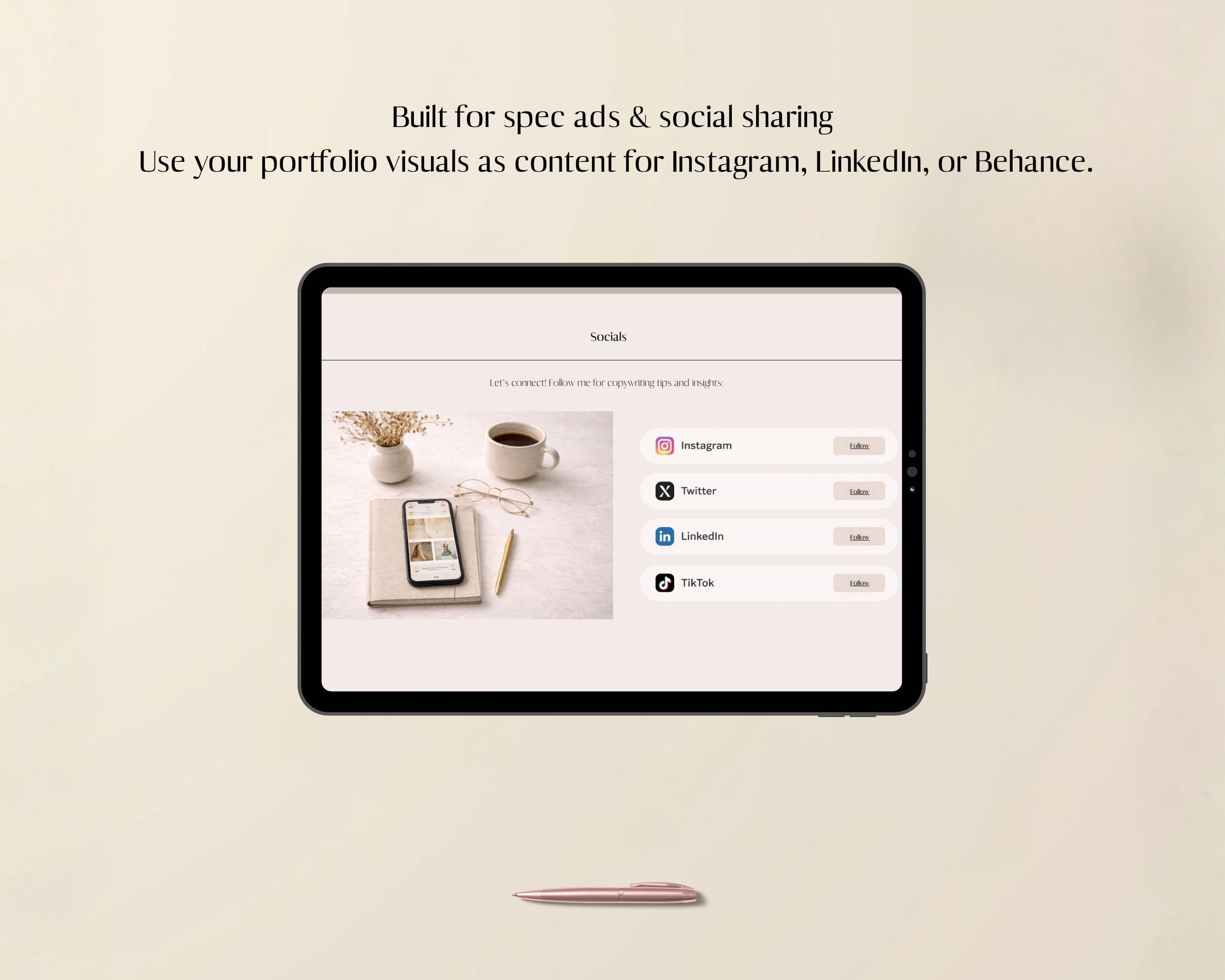 -Dedicated space for socials that can be used for spec copy samples